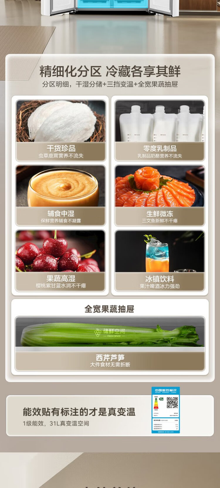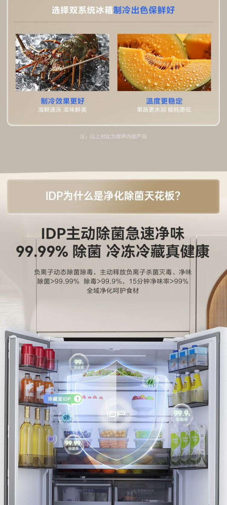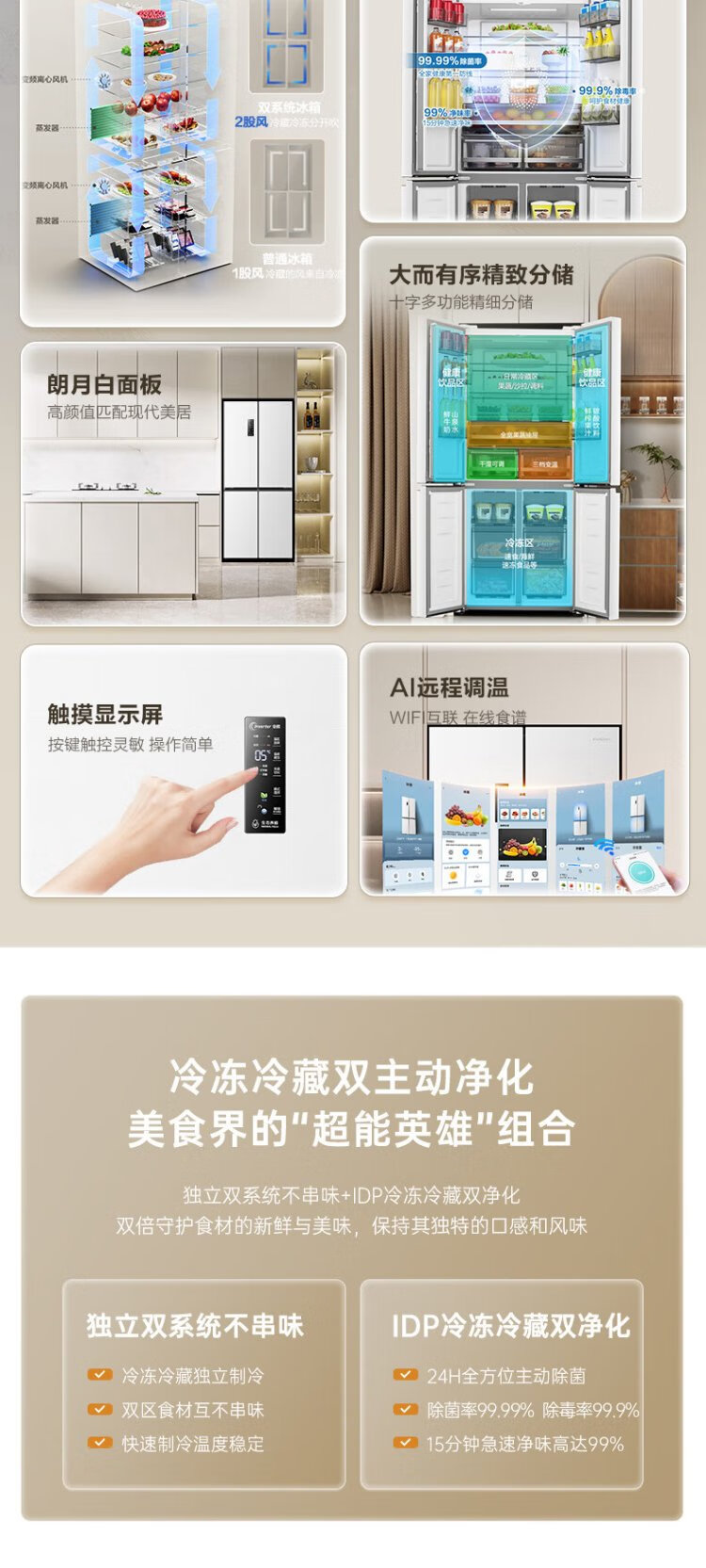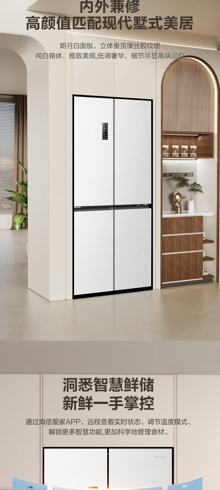 Rongsheng 516-liter dual-clean dual-system cross four-door refrigerator household first-class energy efficiency air-cooled frost-free large capacity BCD-516WD1FPA white national subsidy 526 cross model BCD-516WD1FPA white