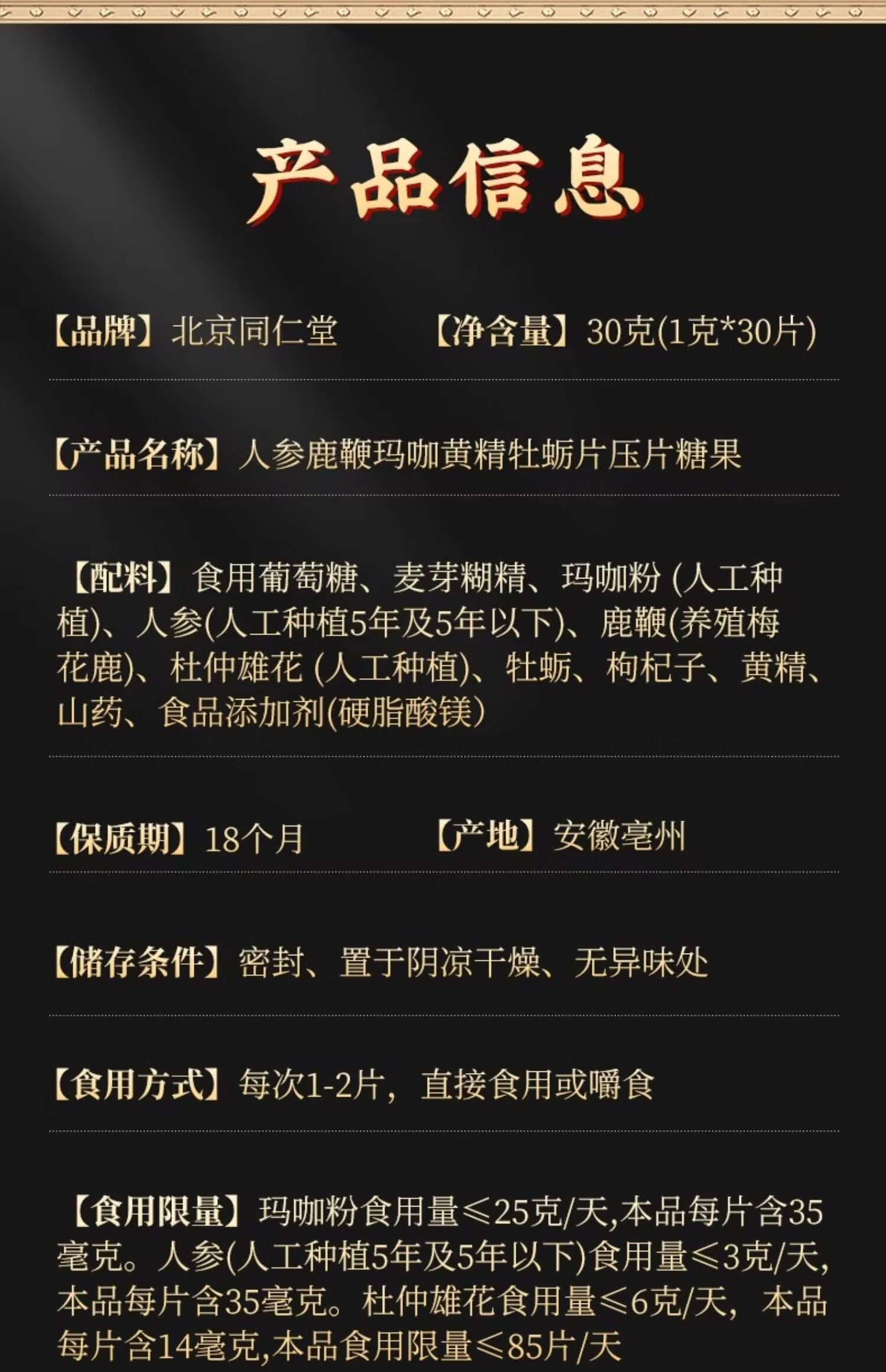 Tongrentang Ginseng Deerbian Maca Oyster Peptide Tablets Polygonatum Maca Pills Adult male essence and kidney nutritional tonic 5 bottles 30% of customers choose long-term supplement set