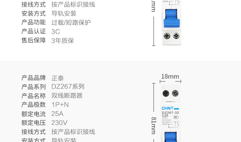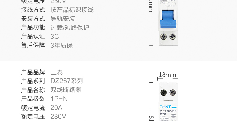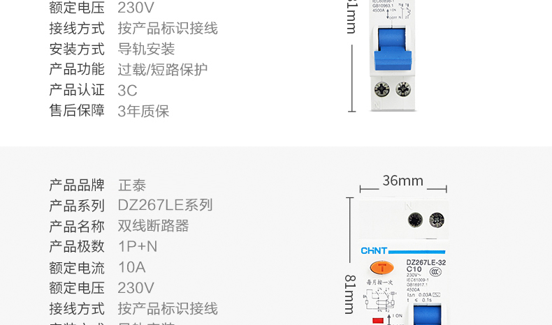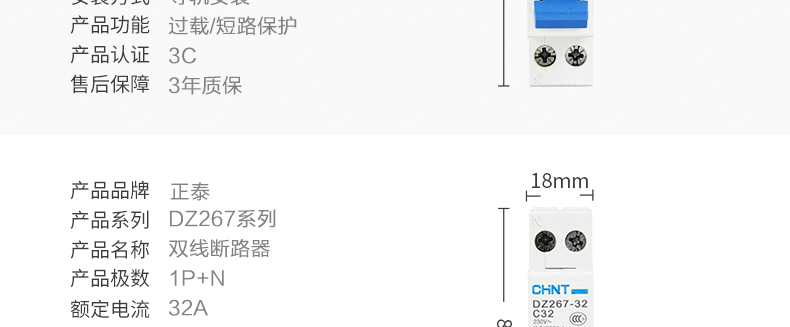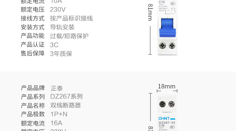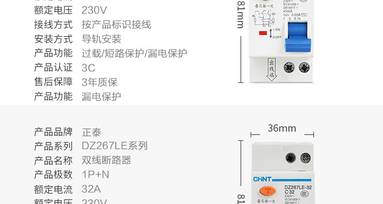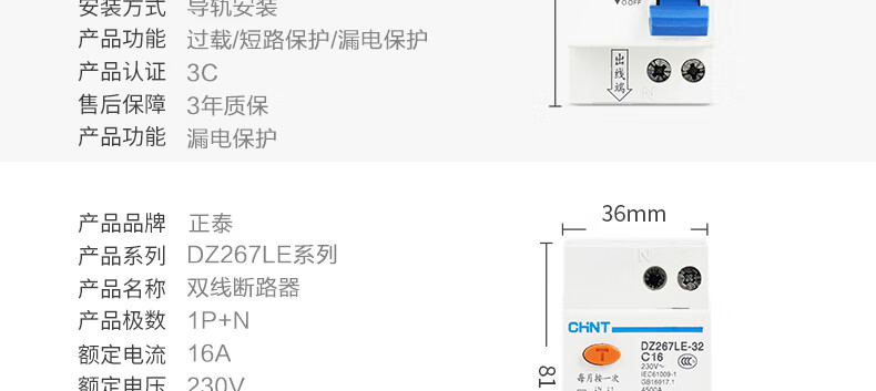 Leakage protector DZ267LE-32 leakage air switch C10A 16 20 25 1P+N 16A