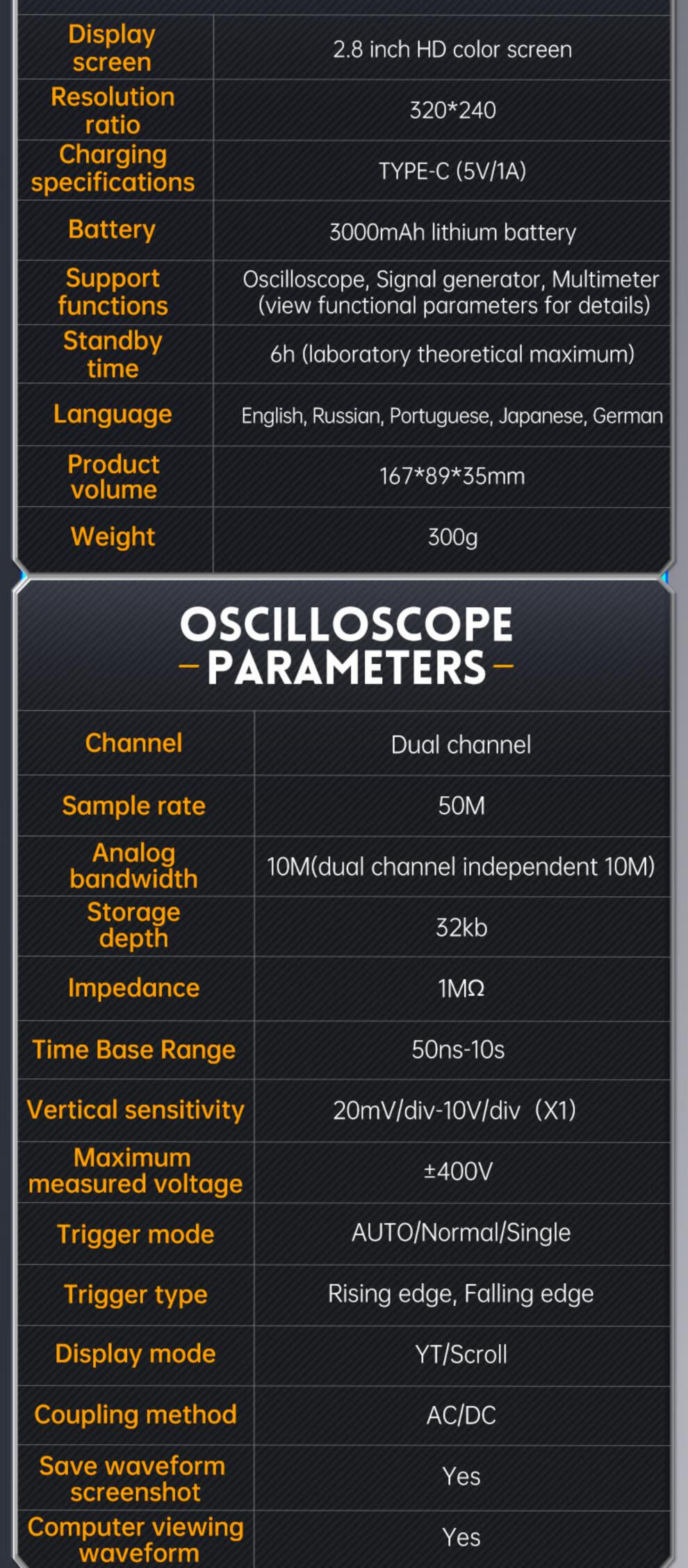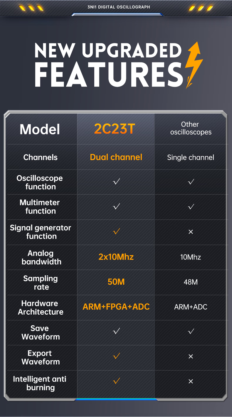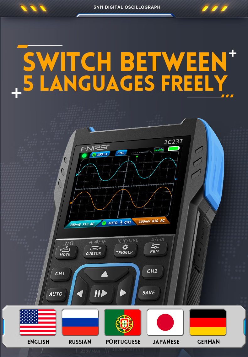 FNIRSI2C23T 3-in-1multi-function oscilloscope handheld small 2C23T(two 10X probe) Engl