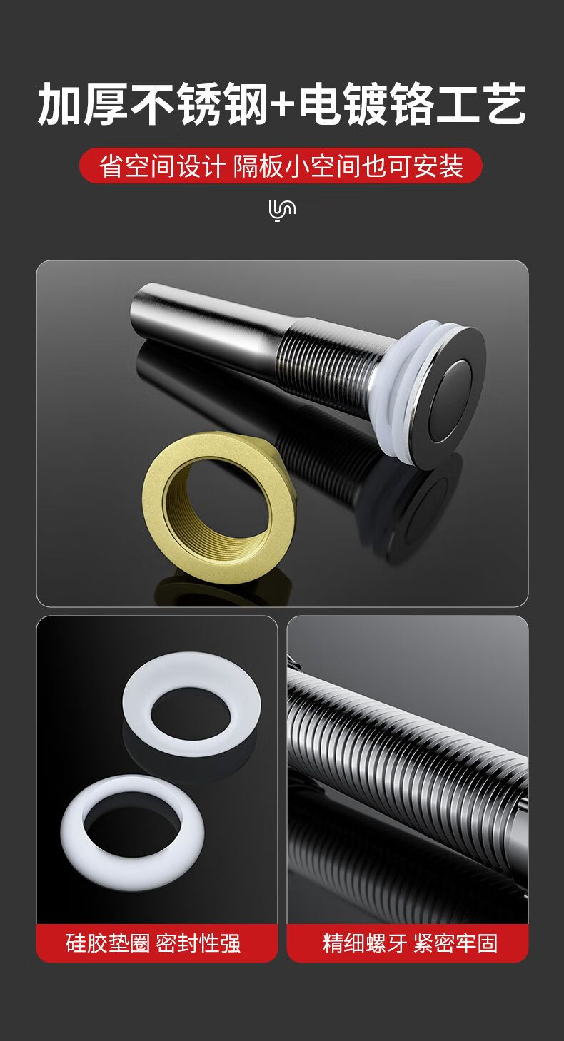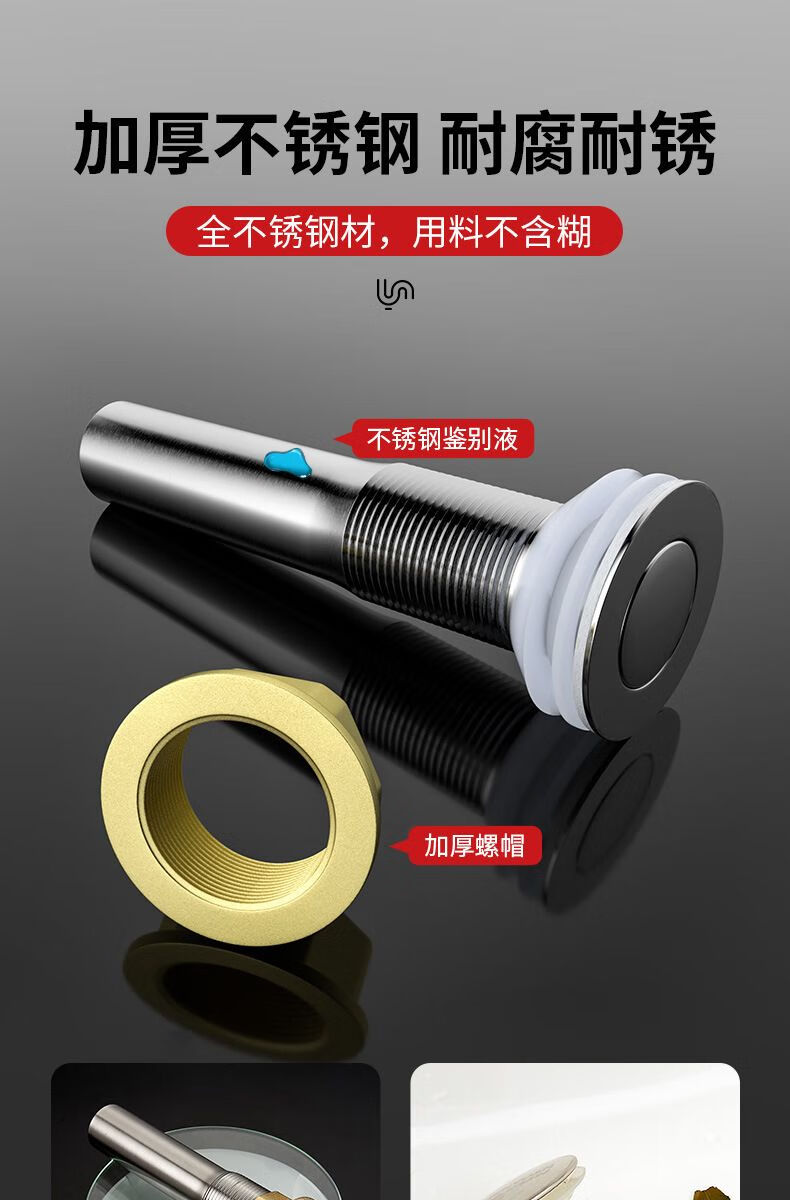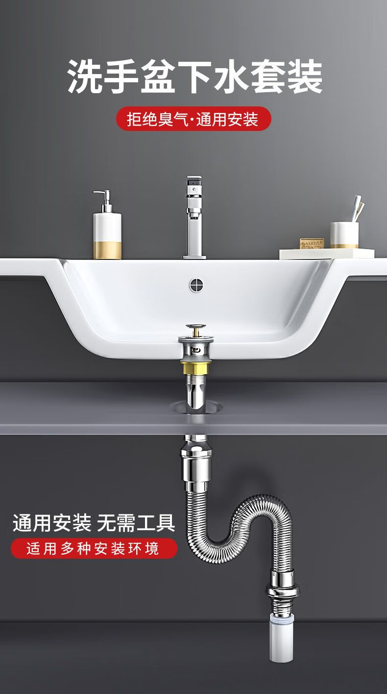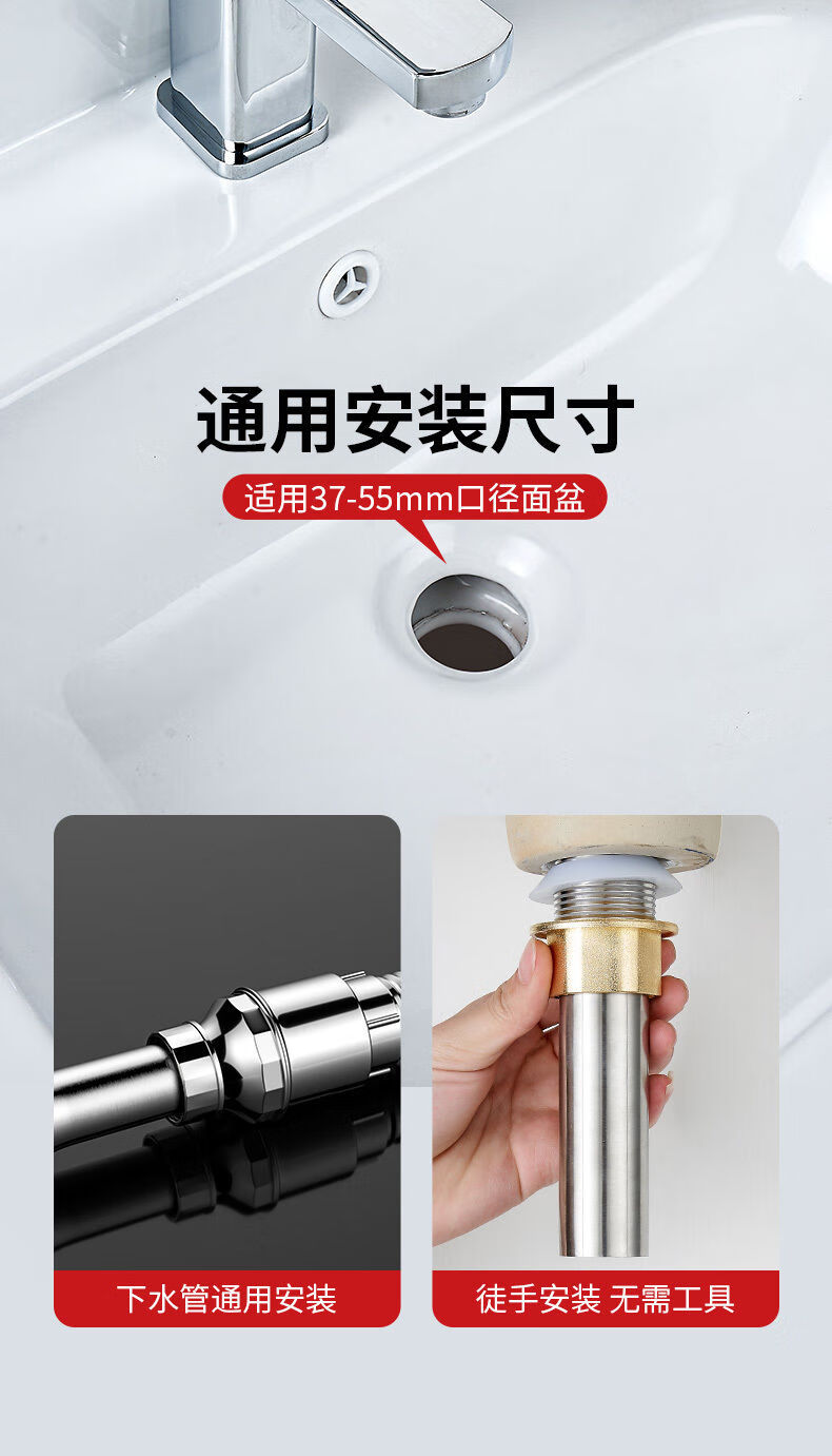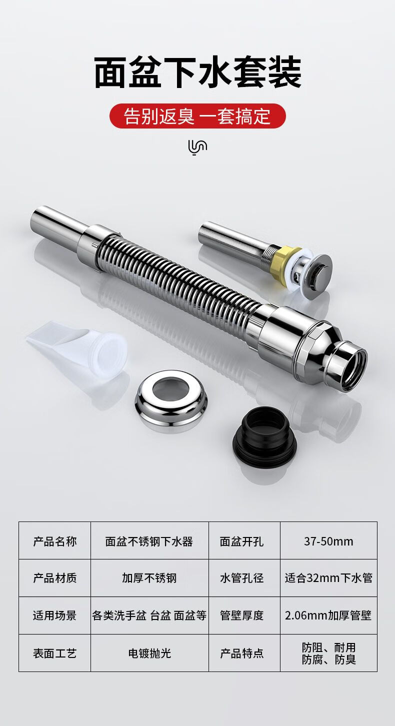 Jomoo new stainless steel wash basin sewer pipe anti-odor leakage plug drain pipe basin wash basin wash basin drain accessories bounce (with holes) + anti-odor electroplated pipe