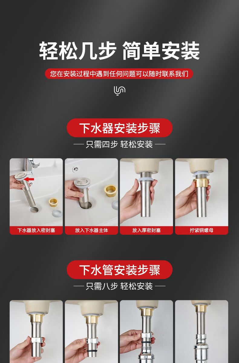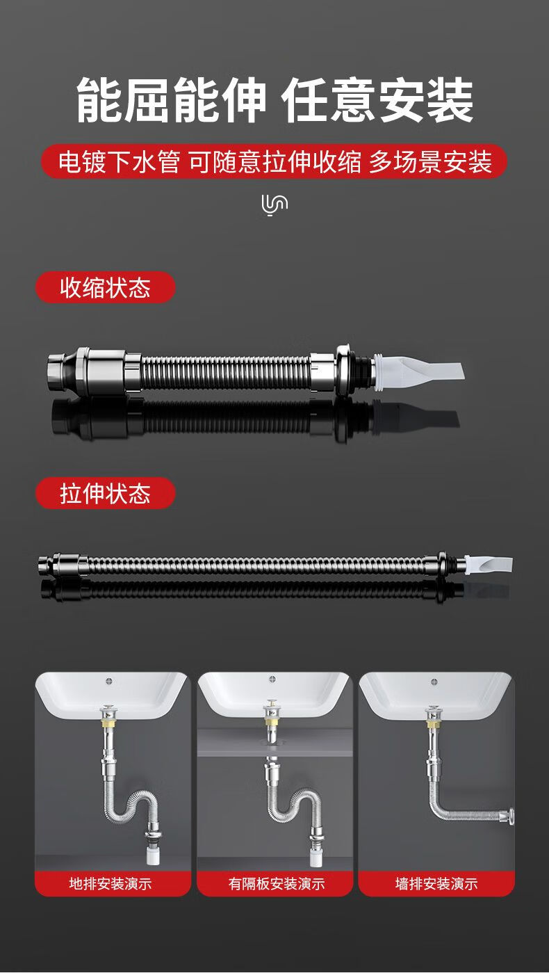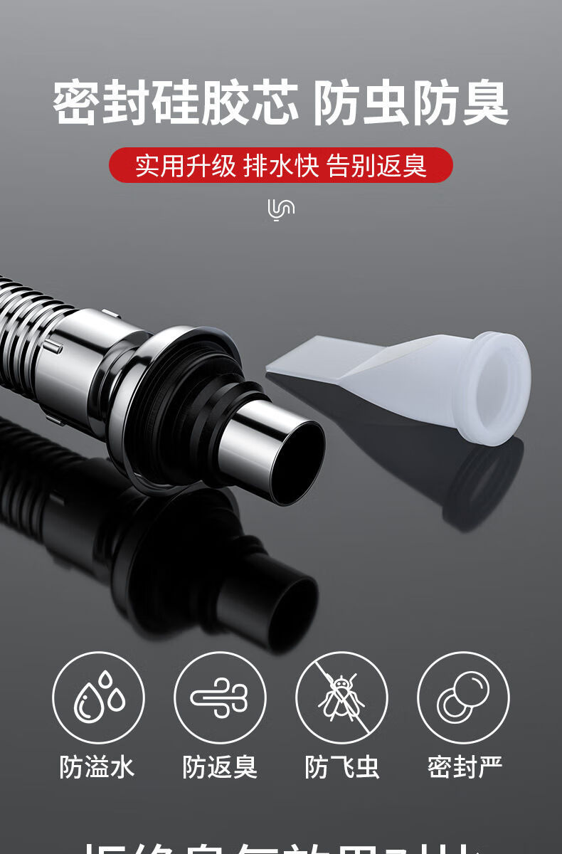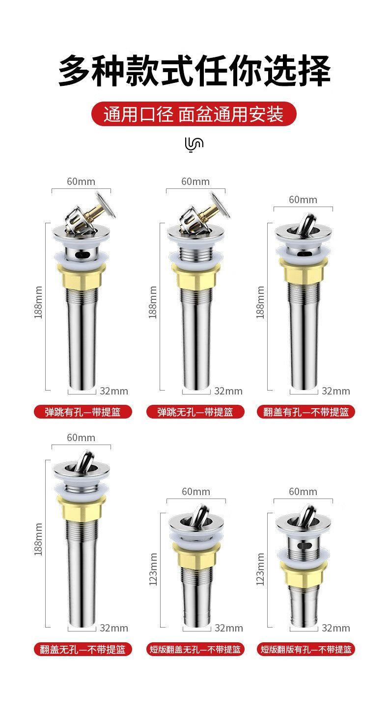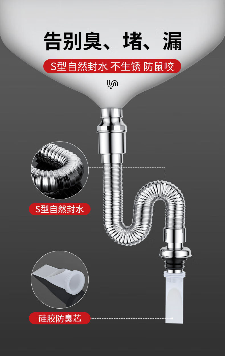 Jomoo new stainless steel wash basin sewer pipe anti-odor leakage plug drain pipe basin wash basin wash basin drain accessories bounce (with holes) + anti-odor electroplated pipe