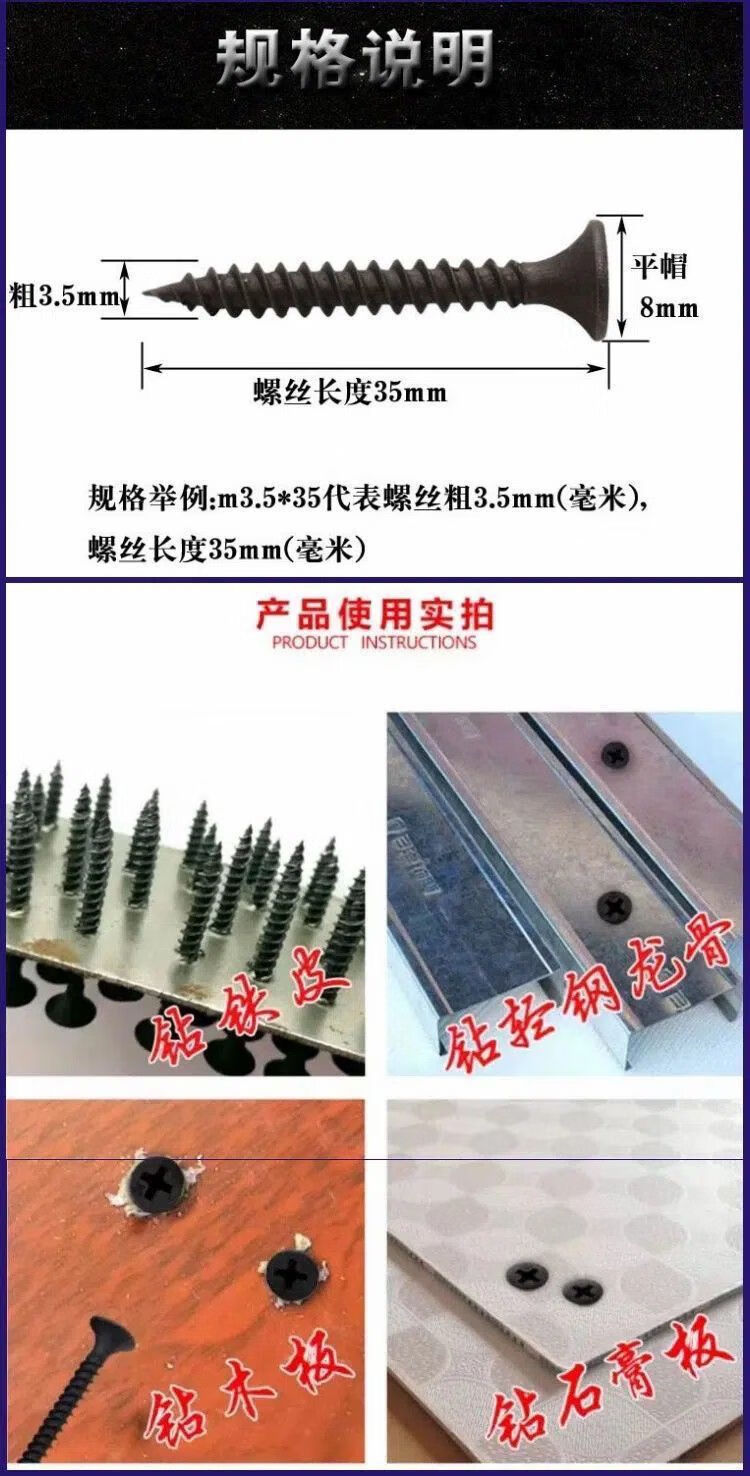 Meikejie M3.5 dry wall nail self-tapping screw black cross countersunk head flat head wood wool wood tooth woodworking screw wood screw extra hard M3.5*30 (1 catties about 280 pieces) 1 catties (with 1 bit)