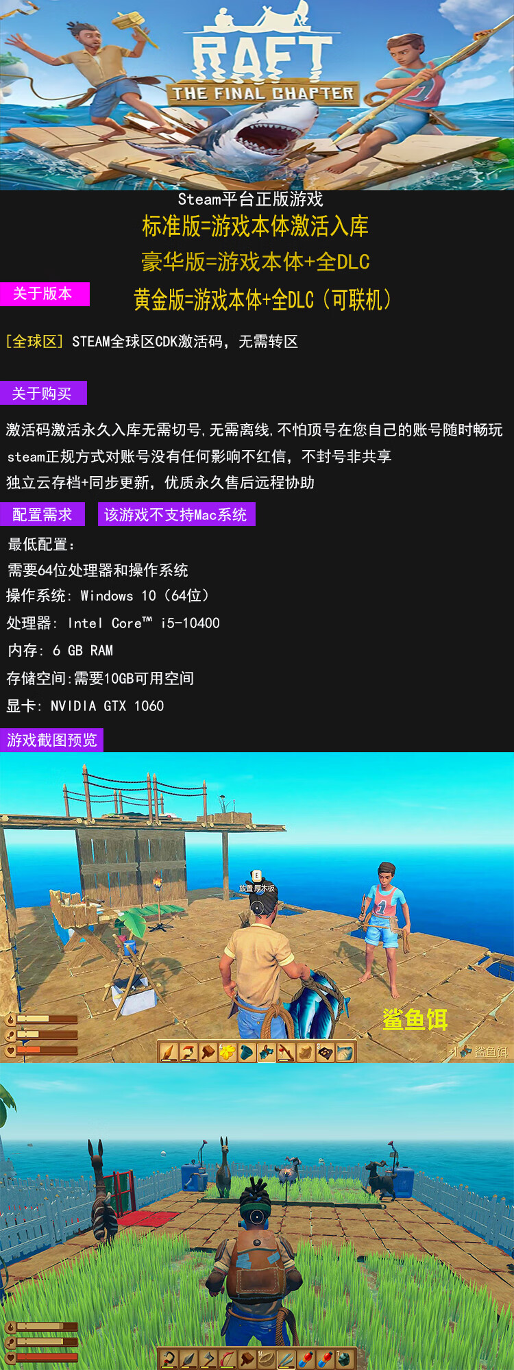 STEAM Raft Survival steam activation code CDKey online computer stand-alone game redemption code into the library Ultimate Edition-Ontology+DLC Friends LAN connection