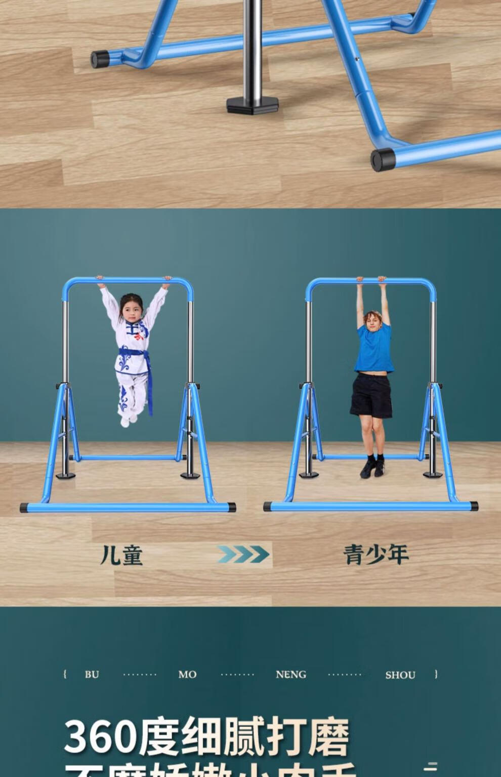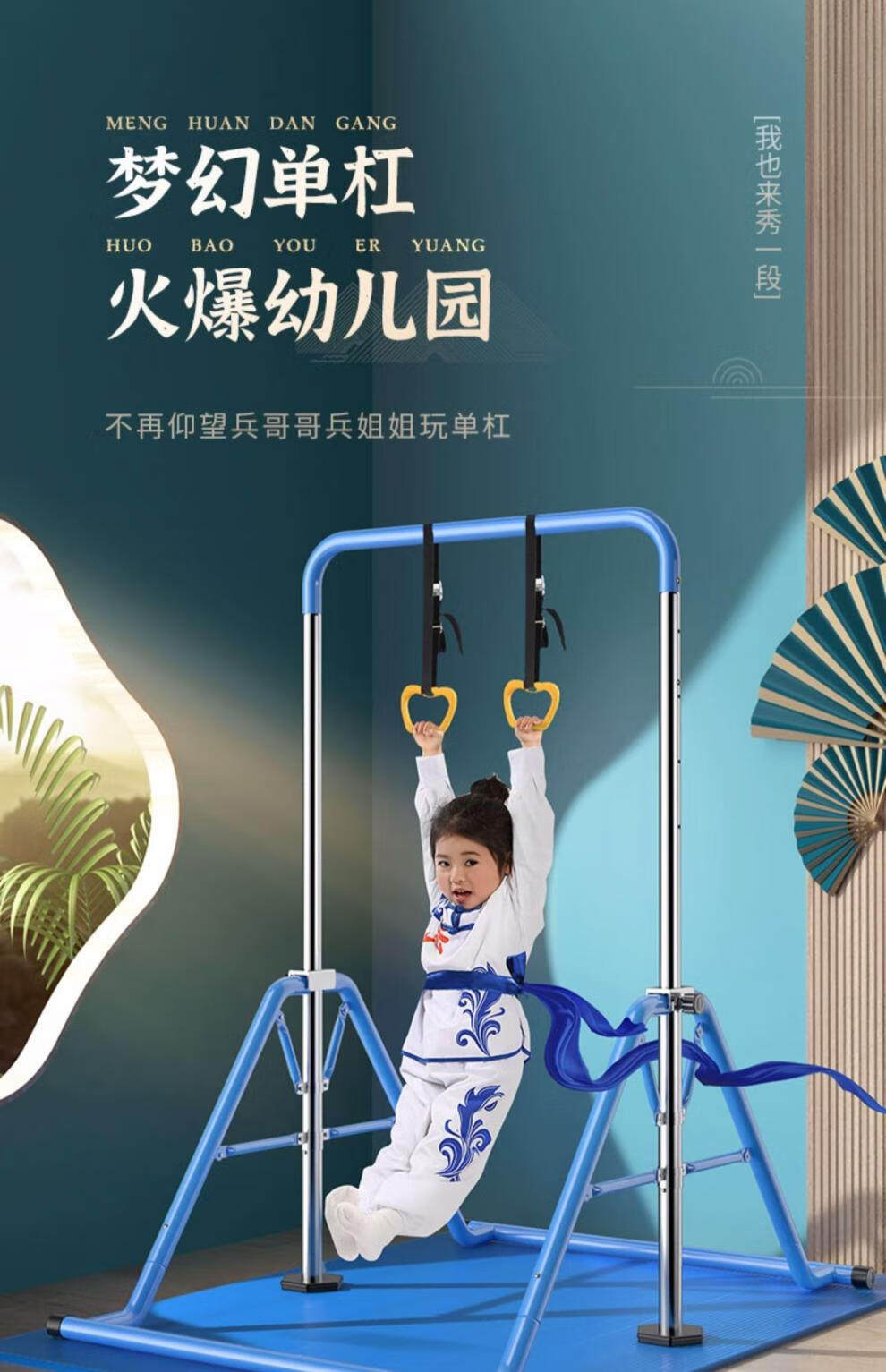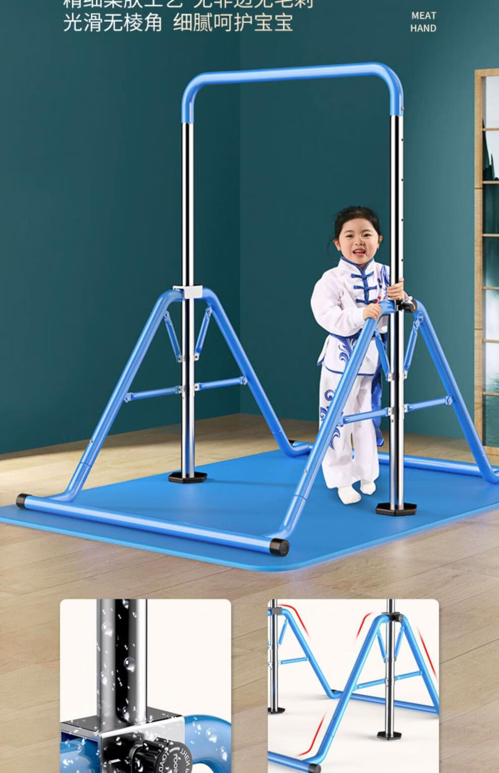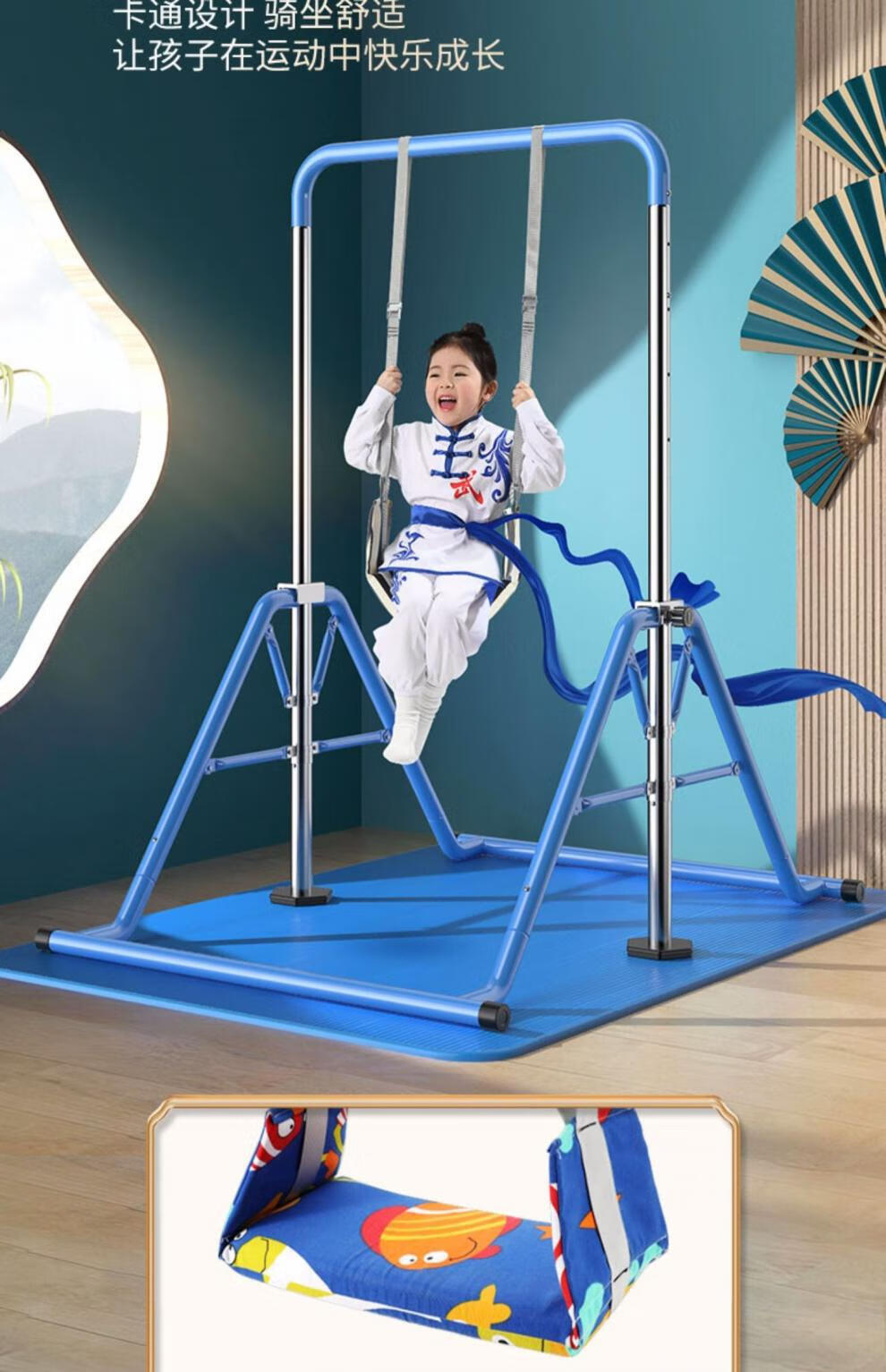 YUNRAN children's horizontal bar home indoor pull-up exercise fitness equipment swing floor training for children and babies blue upgrade + hanging ring + protective pad