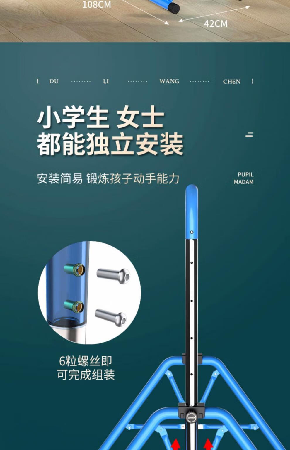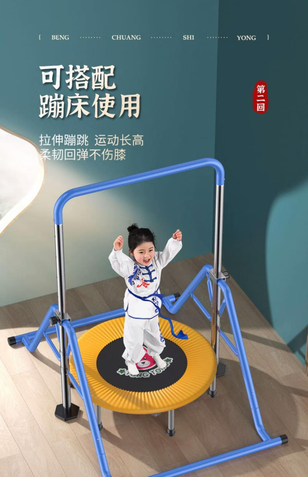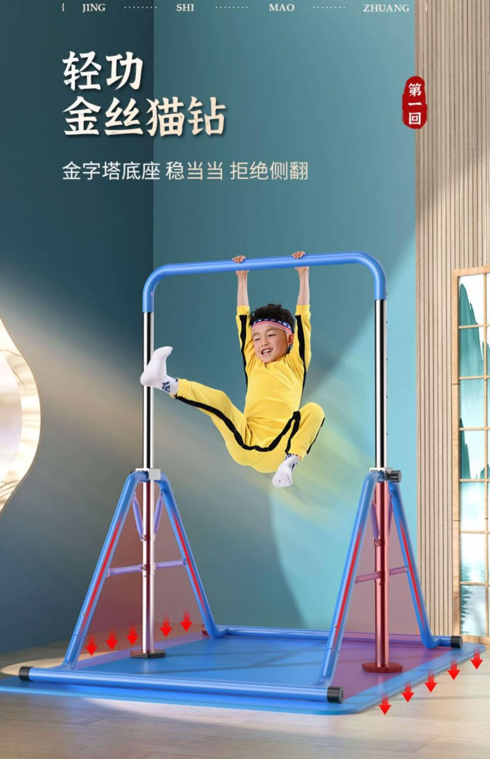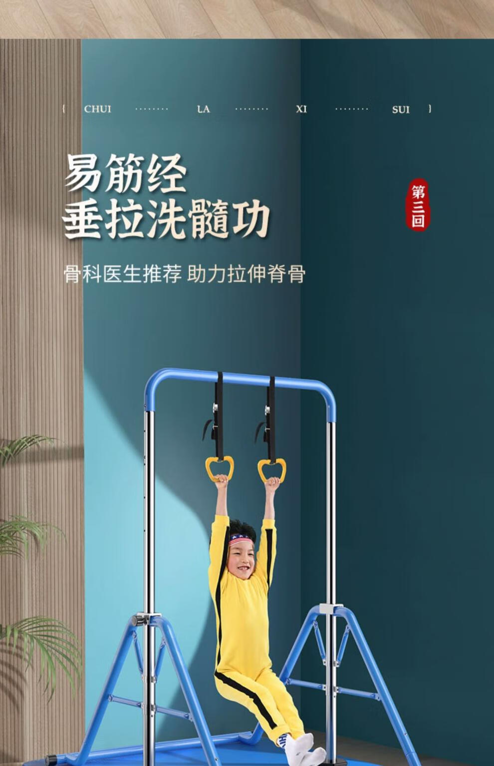 YUNRAN children's horizontal bar home indoor pull-up exercise fitness equipment swing floor training for children and babies blue upgrade + hanging ring + protective pad