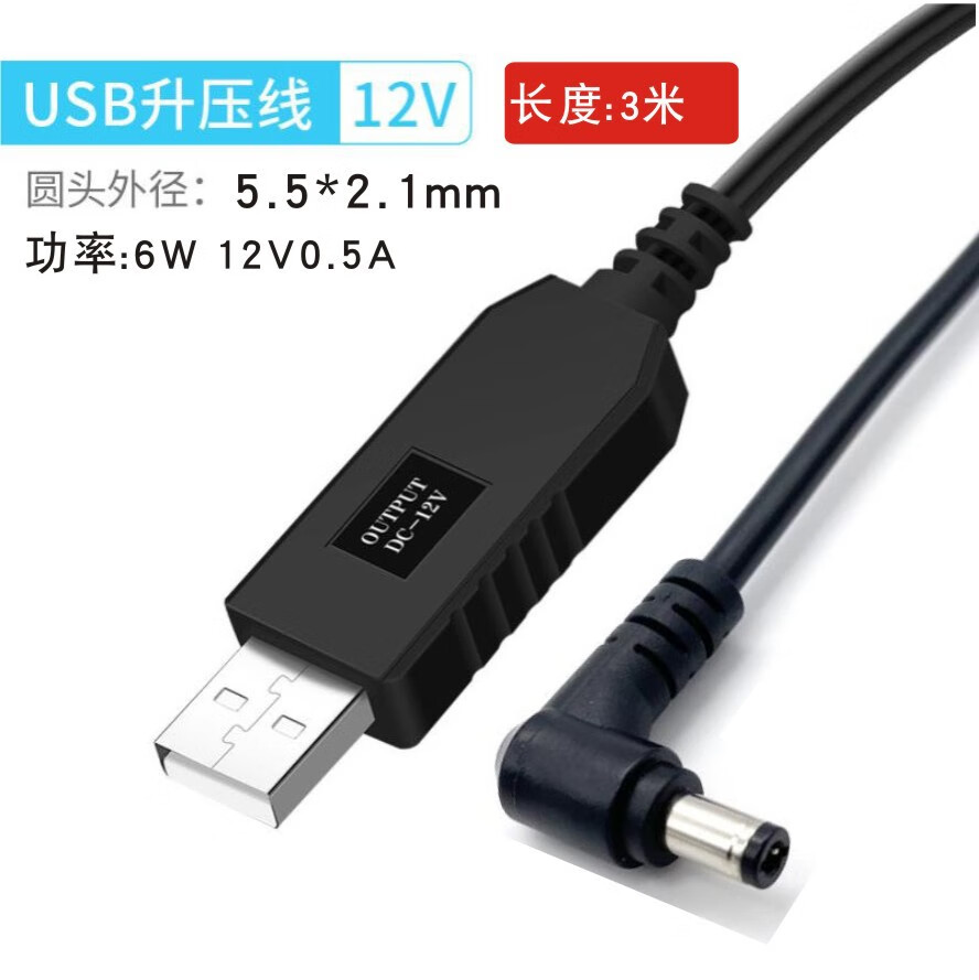 Pinyi USB to DC5521 Elbow 5V to 12VDC3.5 Round Head Boost Cable 4.0 Head 9V Battery Charging Cable Power Cord 1 Meter 12V 35135 Straight Head White