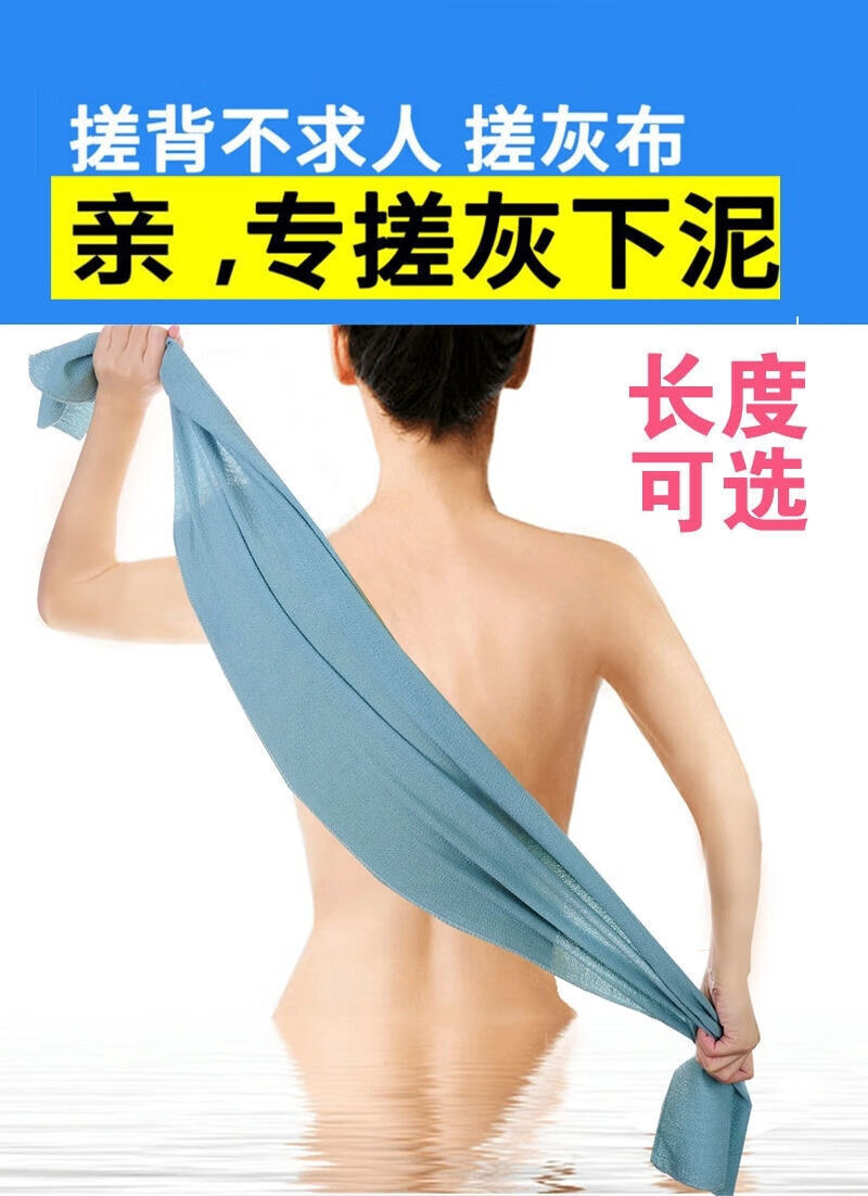 Men's special coarse sand long strip bath towel for women's home back painless rub mud powerful back brushing artifact Lake blue double-sided rub to remove dirt quickly 50*130