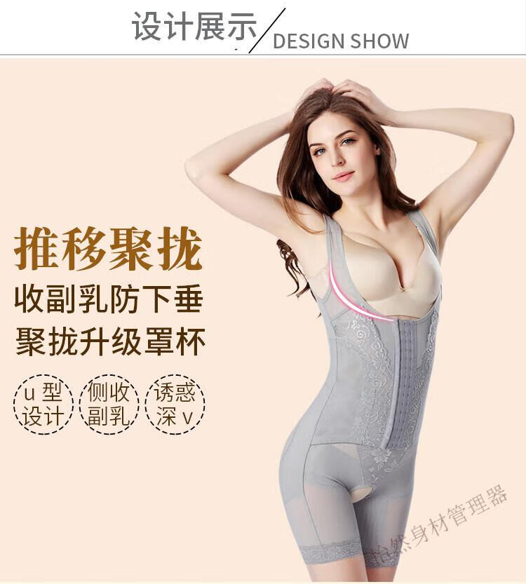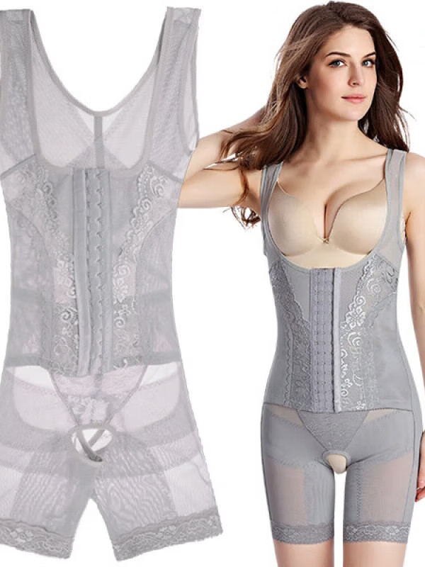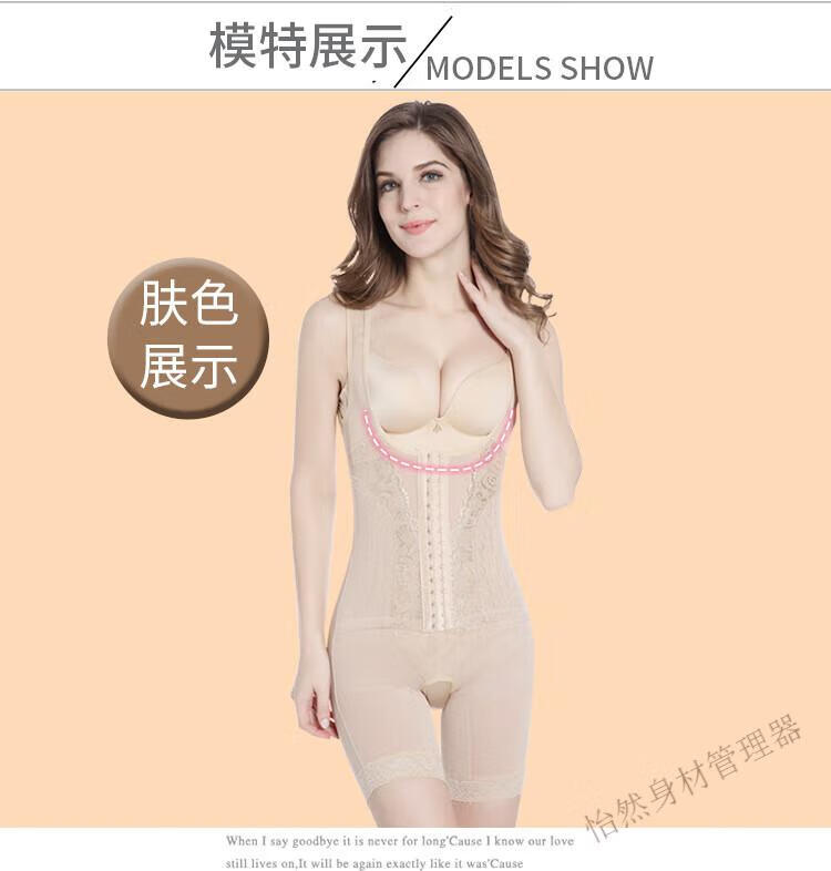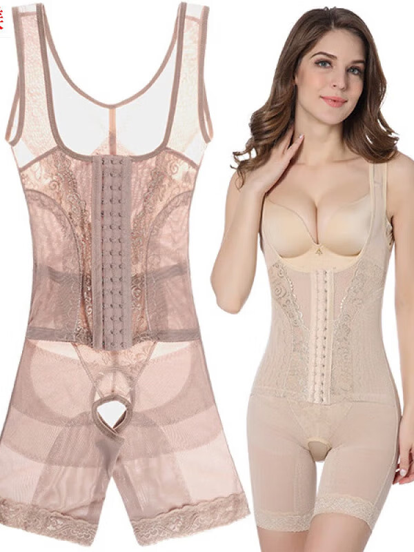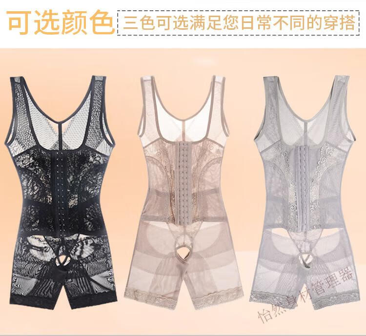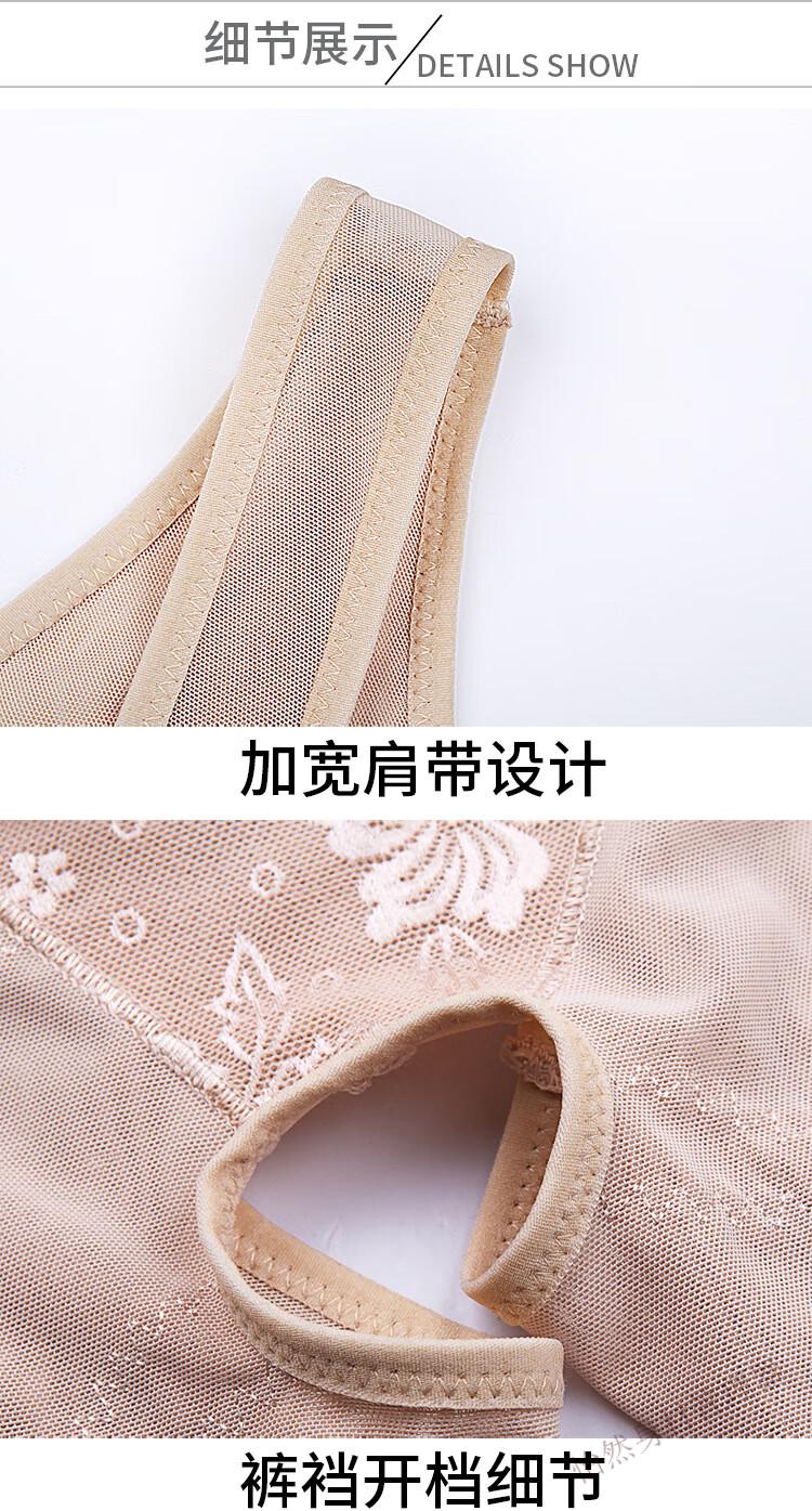 Tingmei (GRACWELL) upgraded high-end three-breasted one-piece body shaper, crotchless pressure belly control mesh lace body suit, skin color XL 111-120 pounds