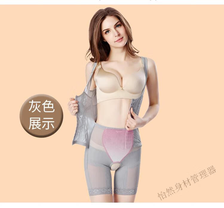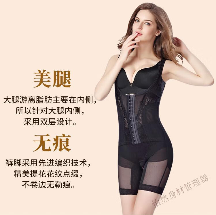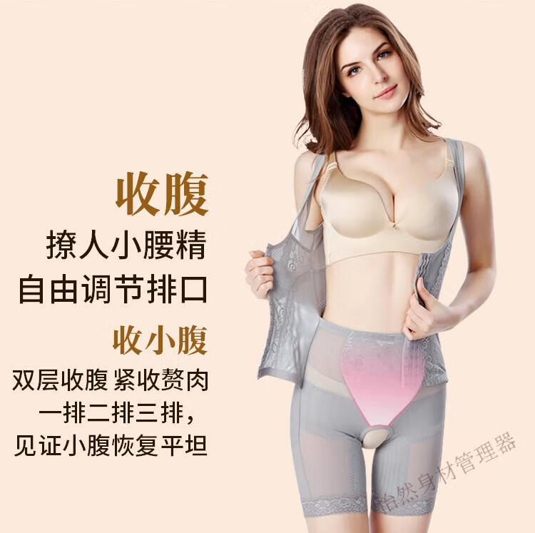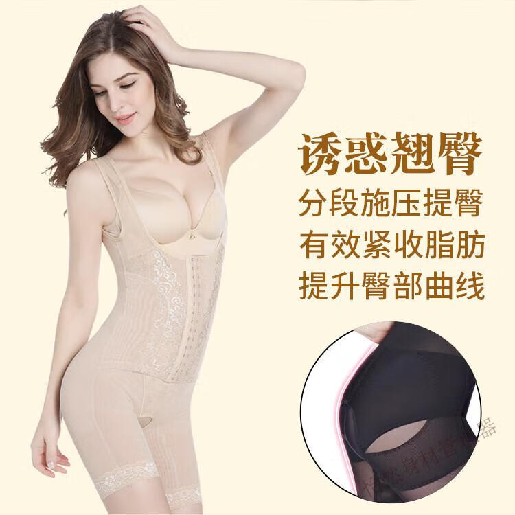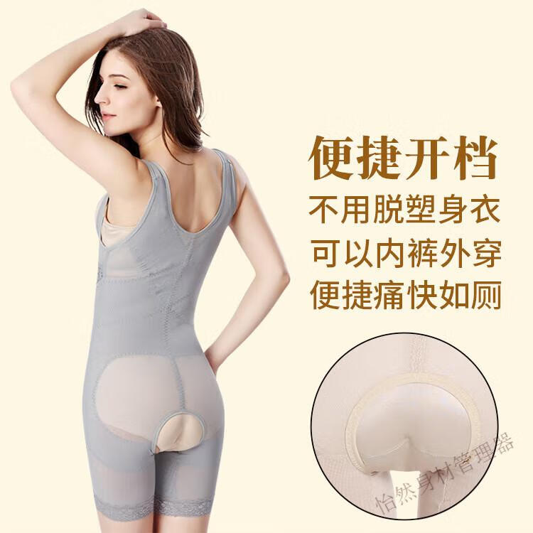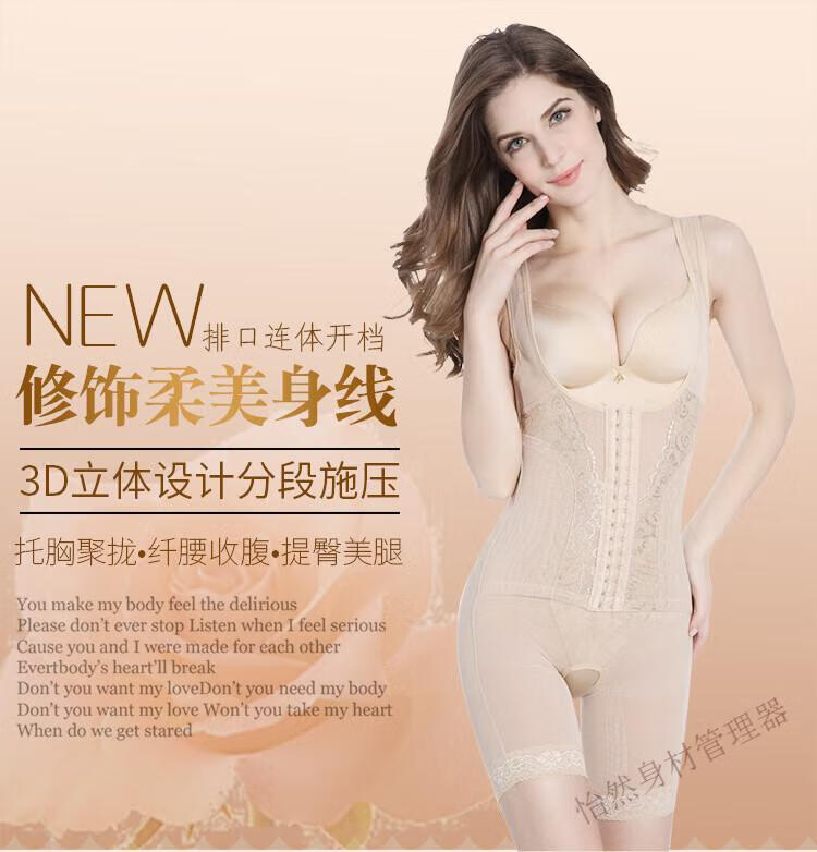Tingmei (GRACWELL) upgraded high-end three-breasted one-piece body shaper, crotchless pressure belly control mesh lace body suit, skin color XL 111-120 pounds