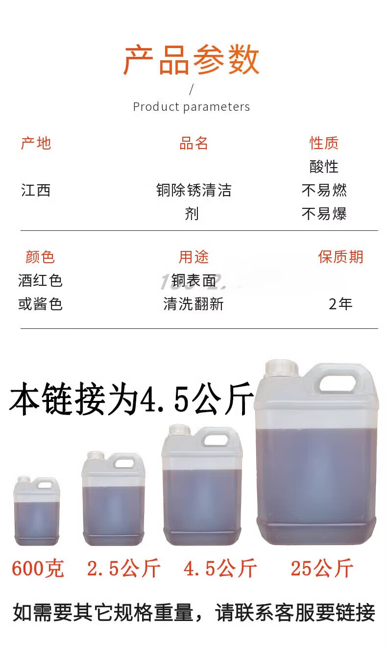 Powerful copper washing water, copper brightener, deoxidizing copper surface, cleaning, patina, ancient coin cleaning solution, copper polishing water 25kg (25kg bucket)