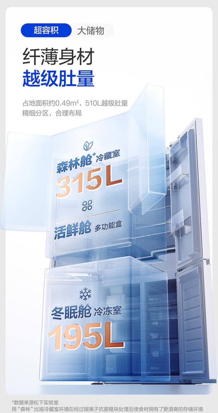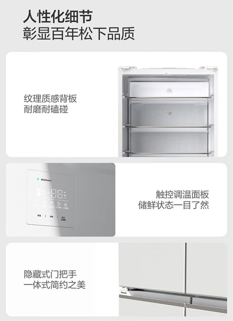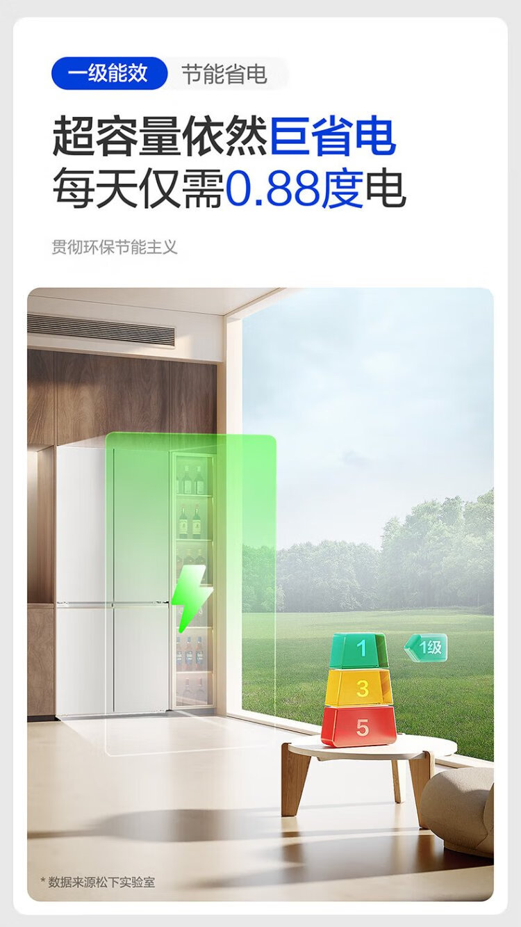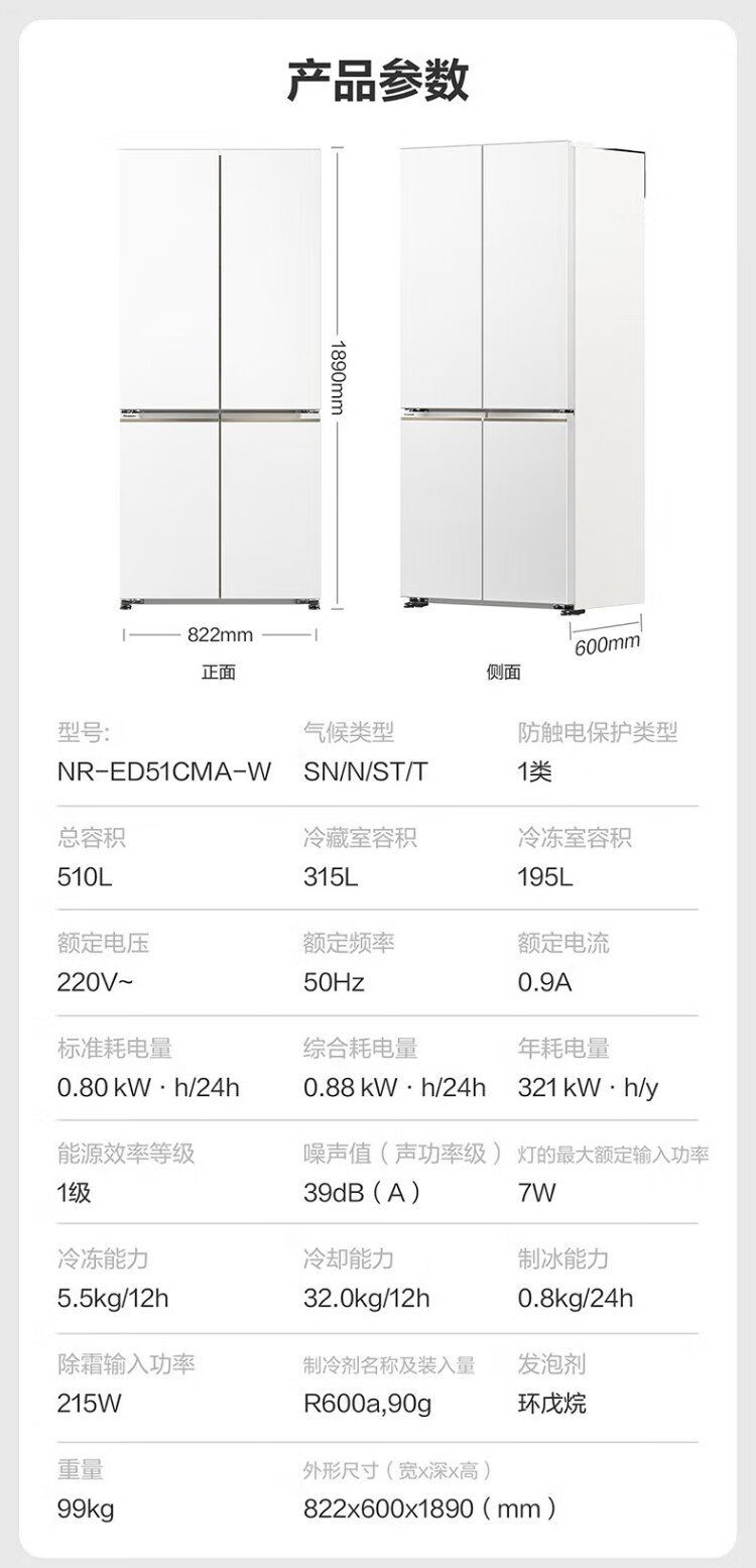 Panasonic Renewal Subsidy Big Seal 2.0 Ultra-thin Zero-embedded 510L Refrigerator Large Capacity Cross Four Door Home Refrigerator Level 1 Automatic Ice Making NR-ED51CMA-W White