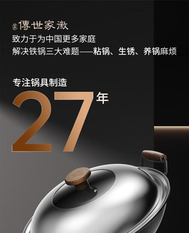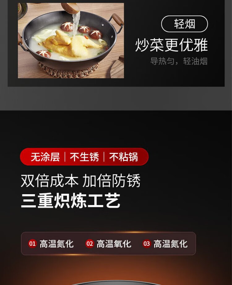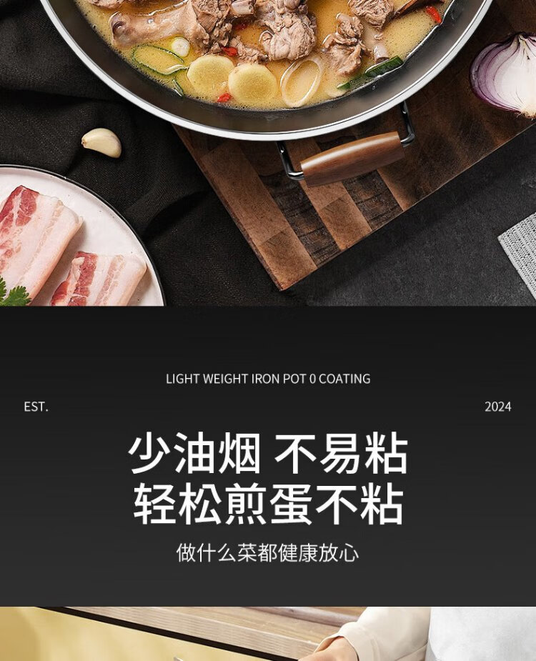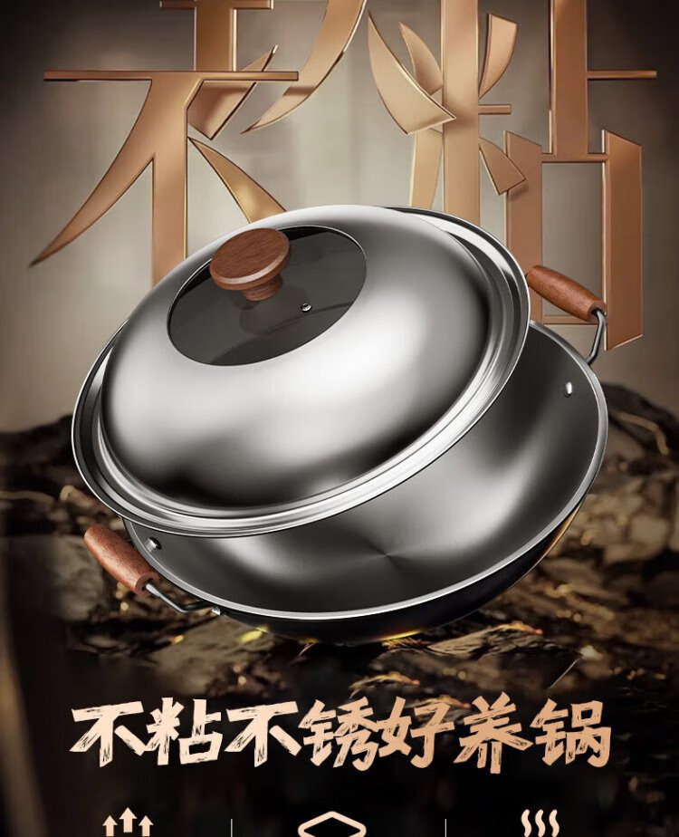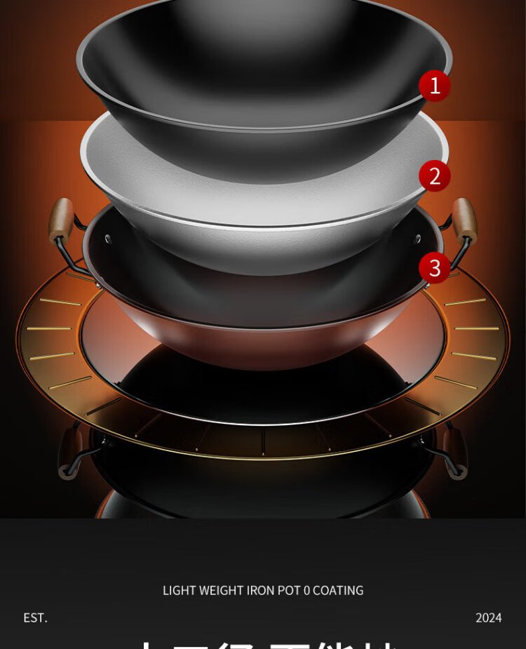 Heirloom family emblem iron pot double-eared wok uncoated cooking pot household old-fashioned wrought iron round bottom pot gas stove special enlarged and deepened 38cm round bottom + lid has opened the pot 38cm