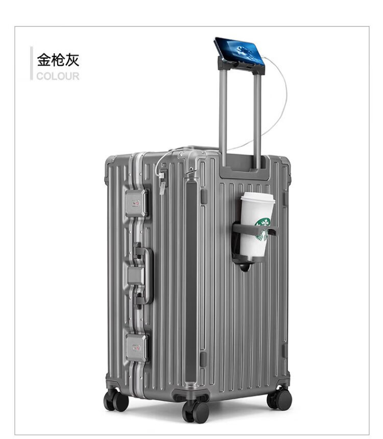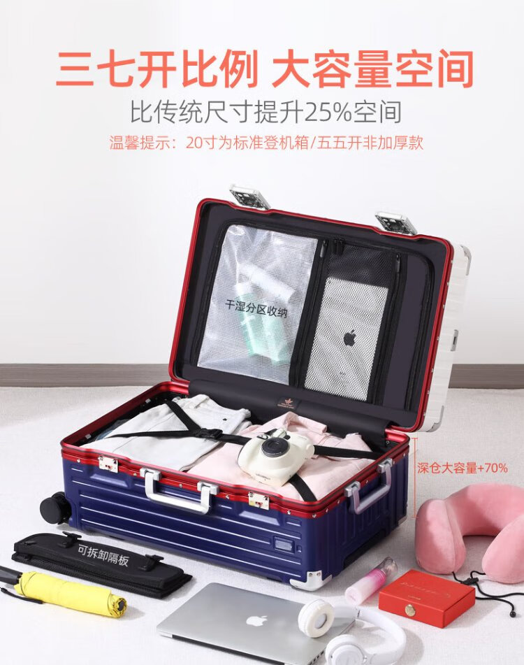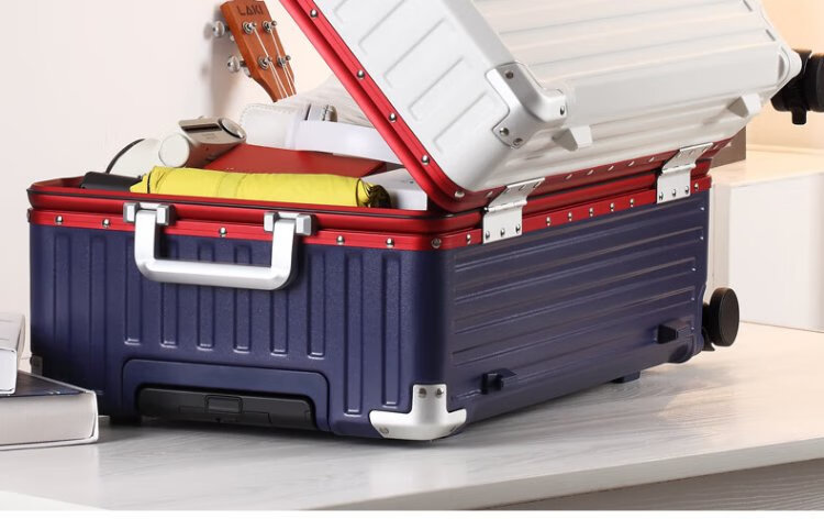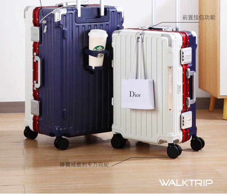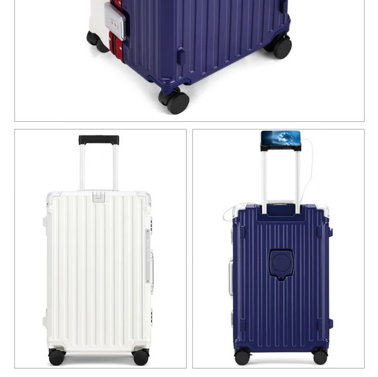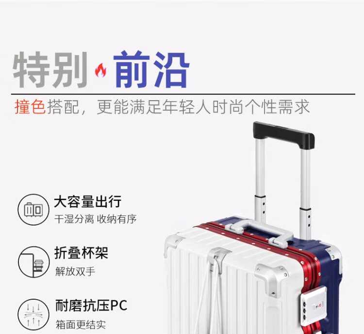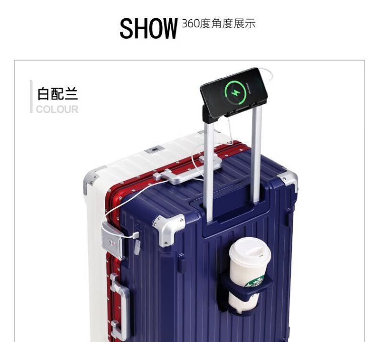 Travel new aluminum frame suitcase 20 inches portable boarding case for women short-distance travel box business password box trolley case for men white with blue 20 inches (boarding box + 50-50 open + multi-function)
