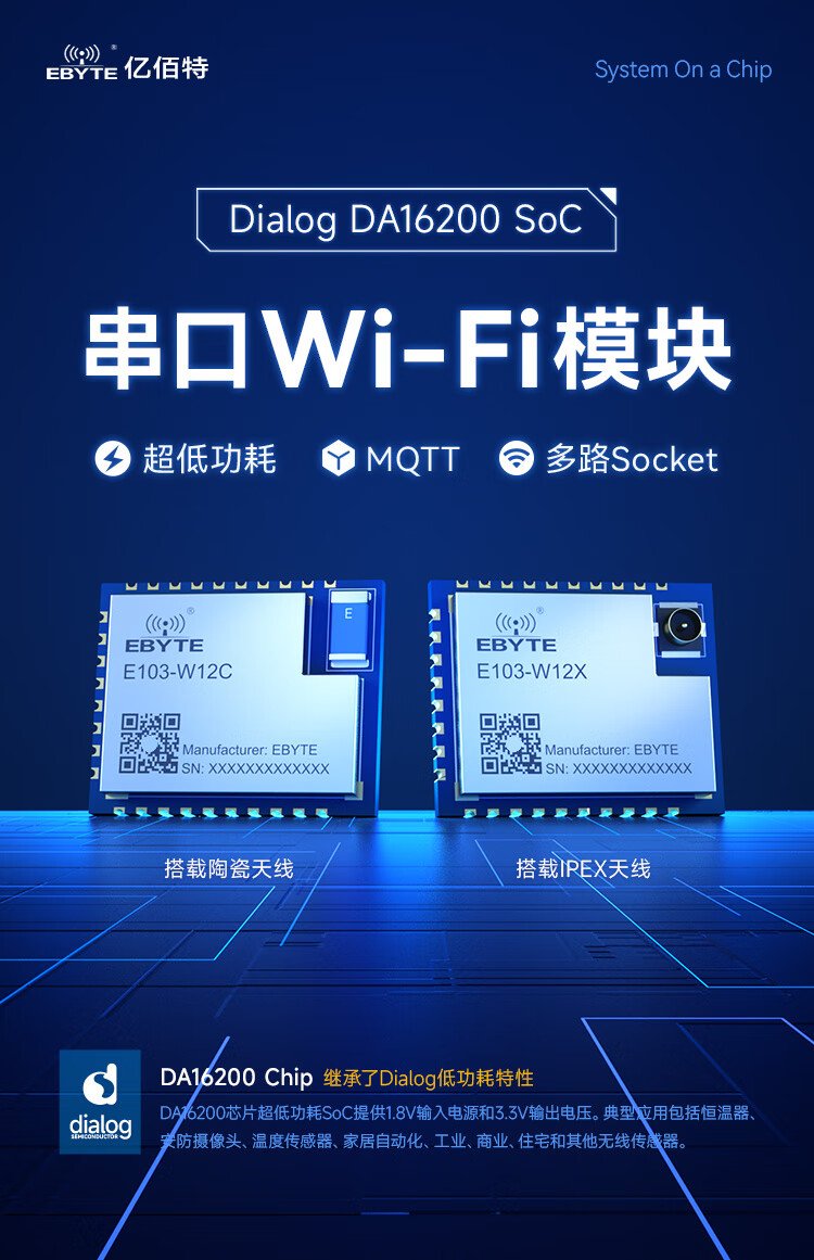Ebyte WiFi module low-power wireless serial port DA16200 SoC chip supports MQTT/MQTTS E103-W12C test kit