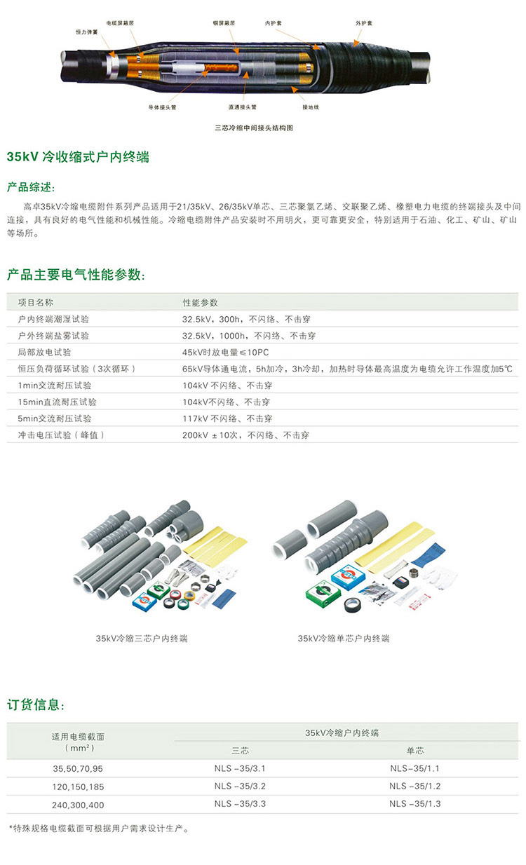 35KV cold shrink cable terminal 3.2 3.3 3.4 Indoor single core cable connector N-35/3.2