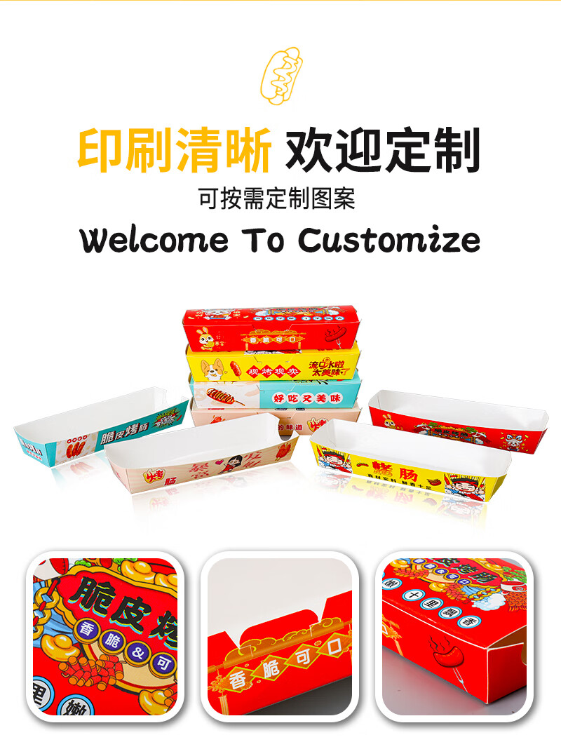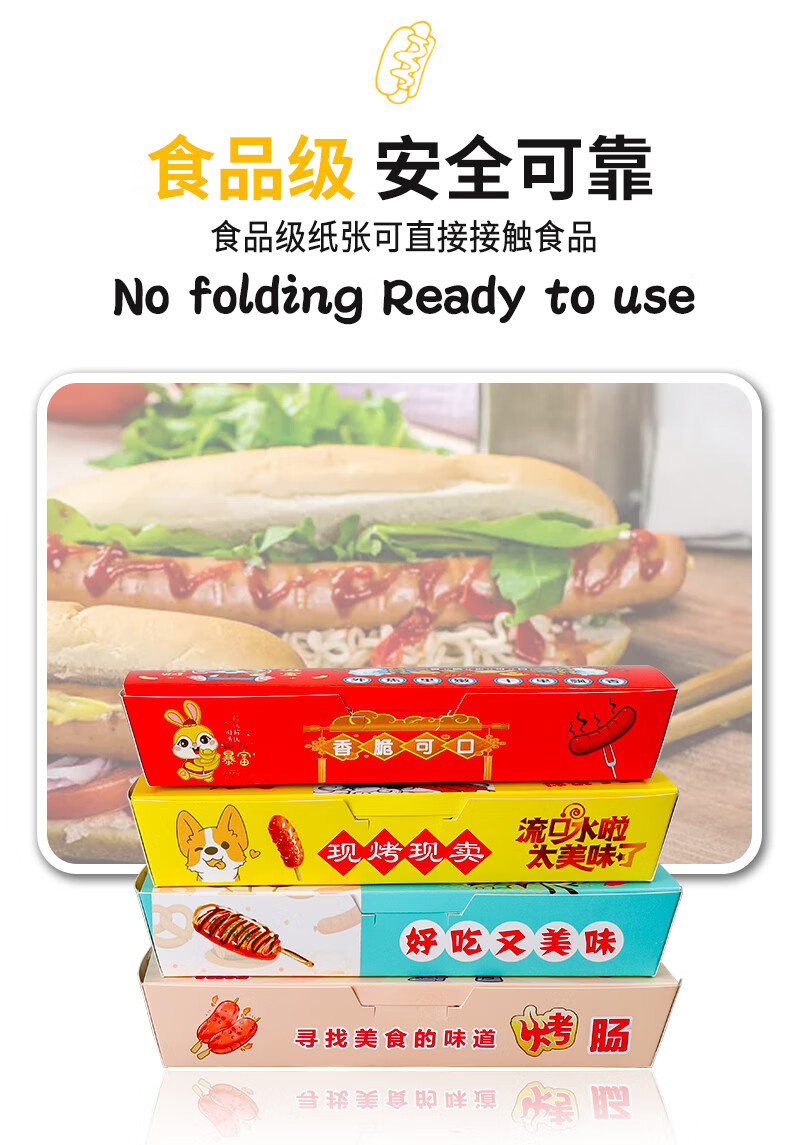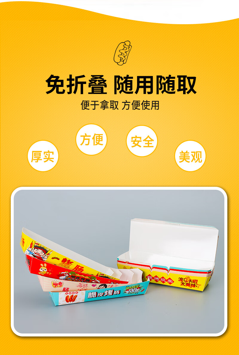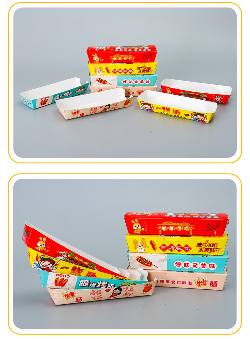 Baichunbao Crispy Grilled Sausage Packing Box Disposable 100g Starch Sausage Box Packing Box Gold Hot Dog Sausage Carton Without Cover 100