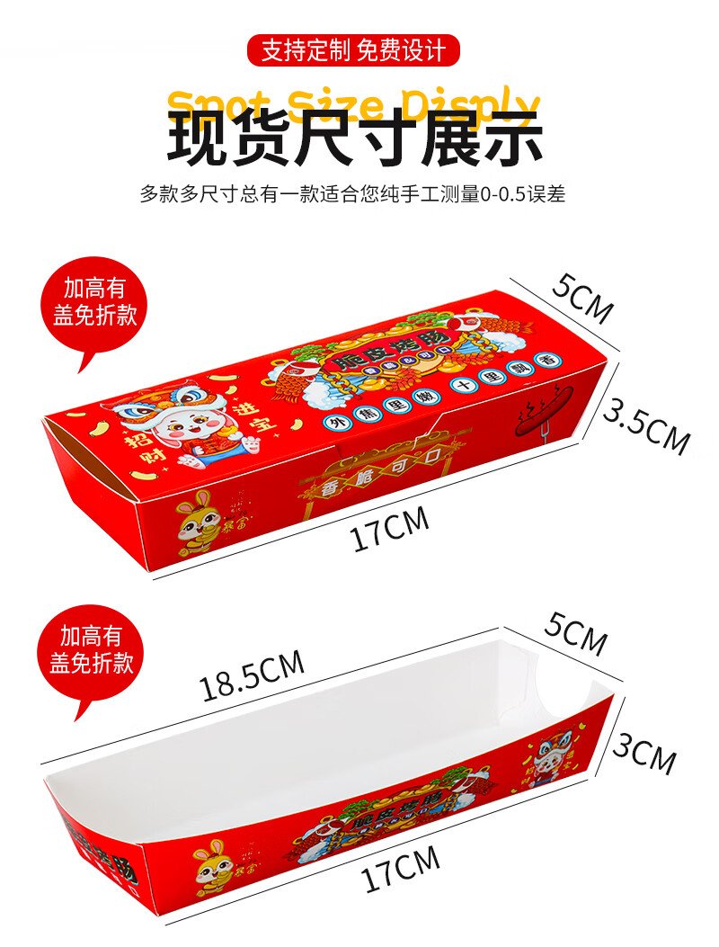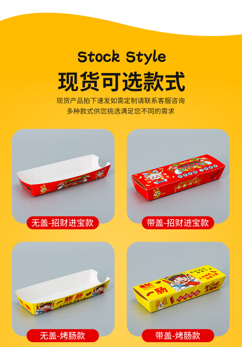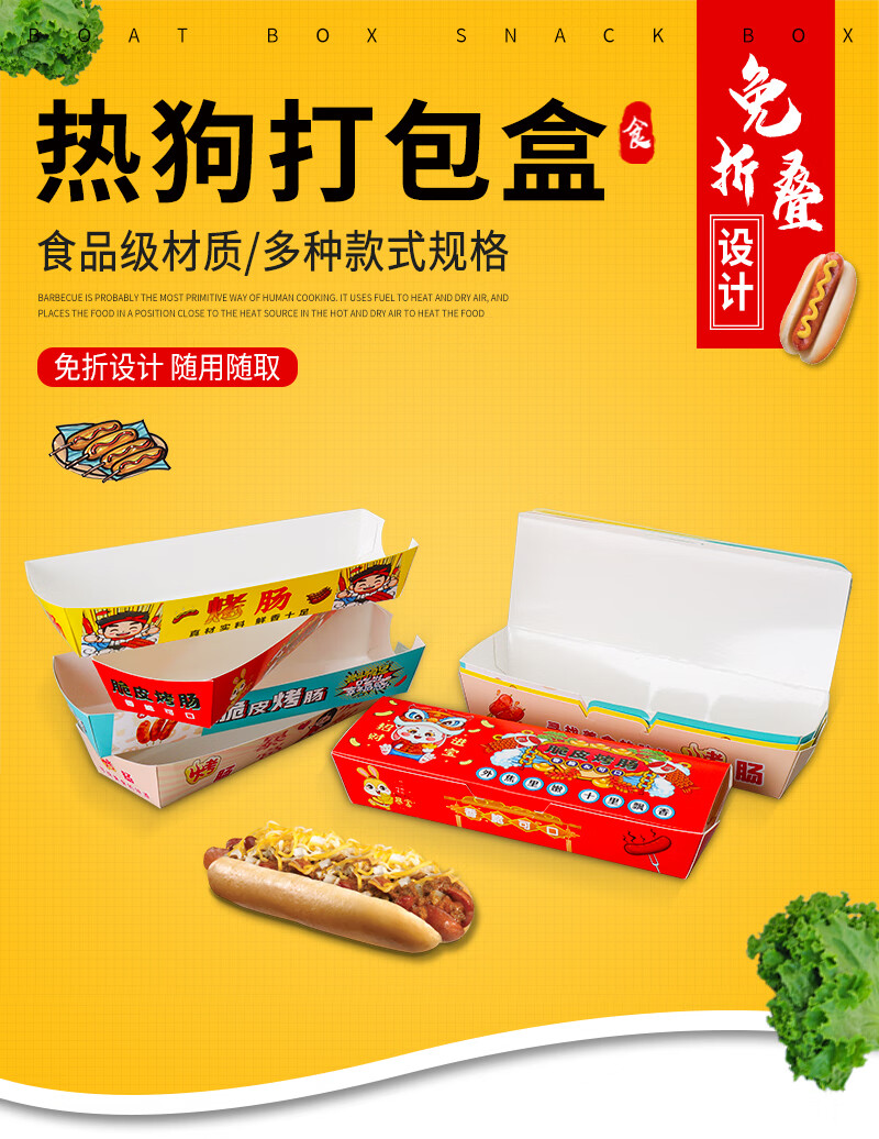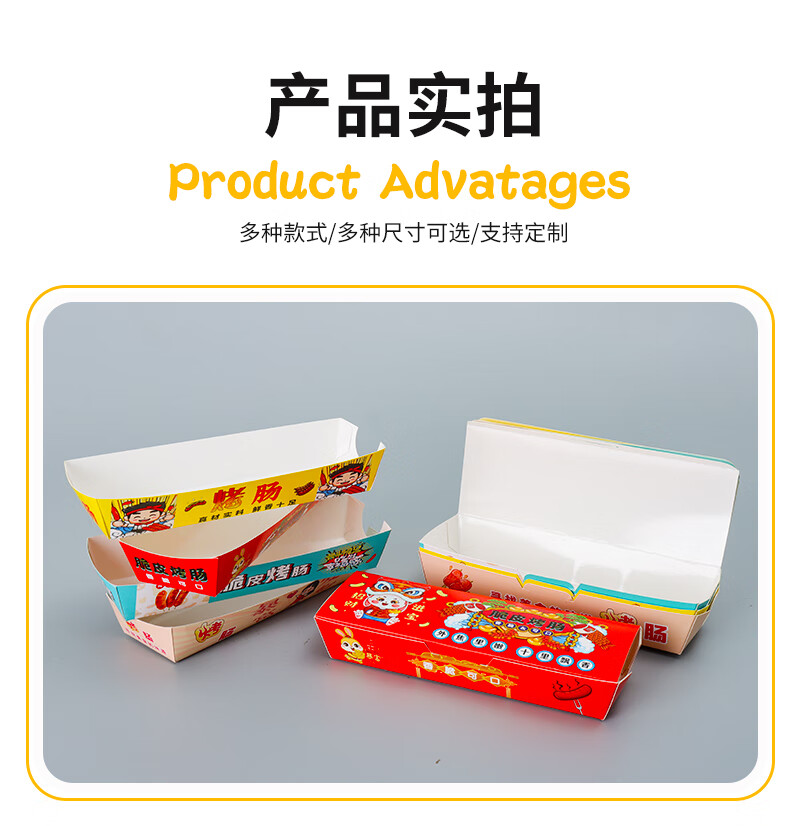 Baichunbao Crispy Grilled Sausage Packing Box Disposable 100g Starch Sausage Box Packing Box Gold Hot Dog Sausage Carton Without Cover 100