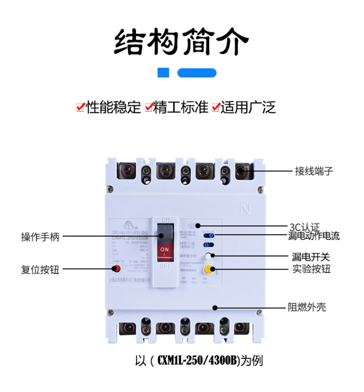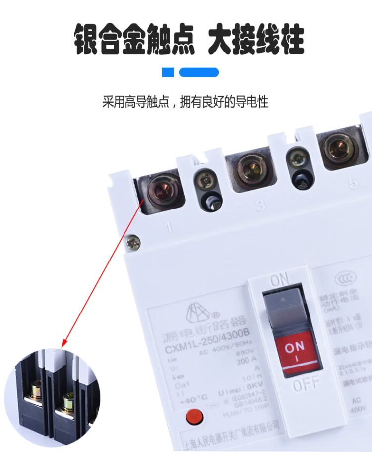 Shanghai earth leakage circuit breaker-125/3300 250/4300B 400/3300 630/430yan CXM1L 500A 3P