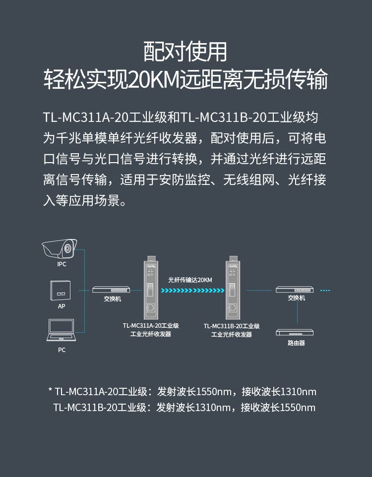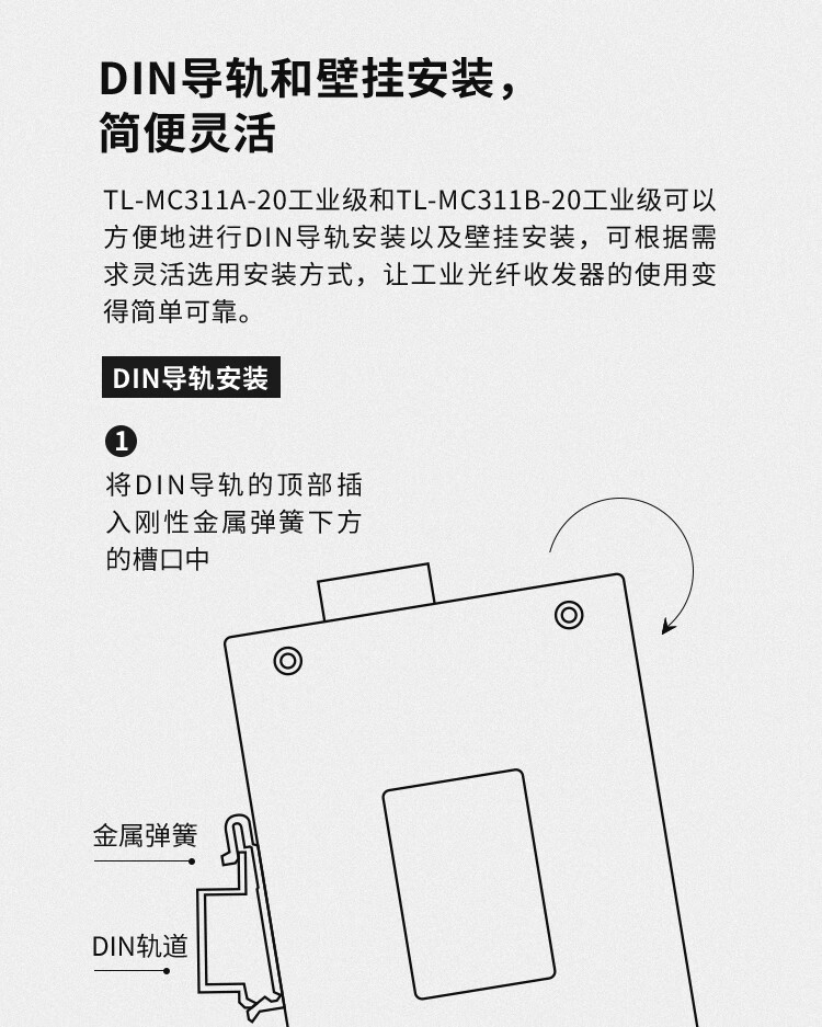 Pulian (TP-LINK) industrial-grade optical fiber transceiver single-mode single-fiber monitoring SC port photoelectric converter rail-type optical switch MC111A+MC111B industrial-grade 100M set