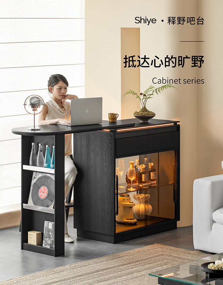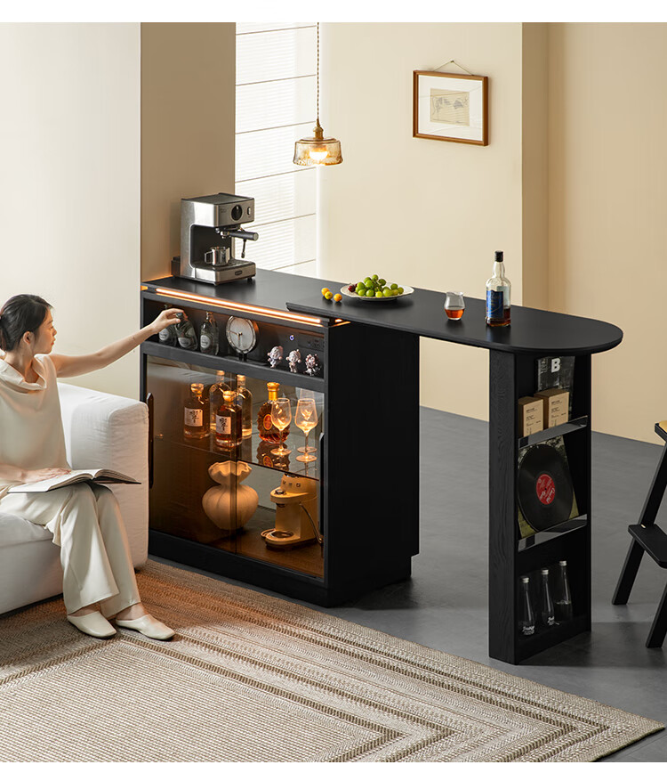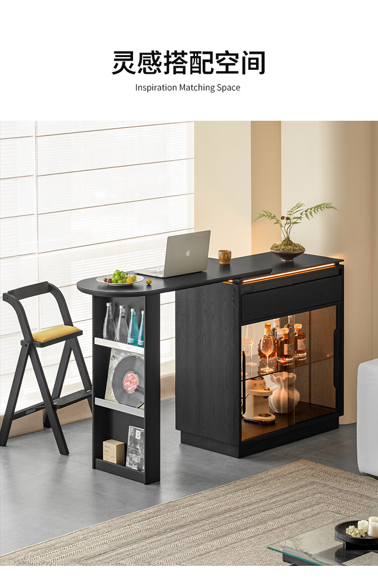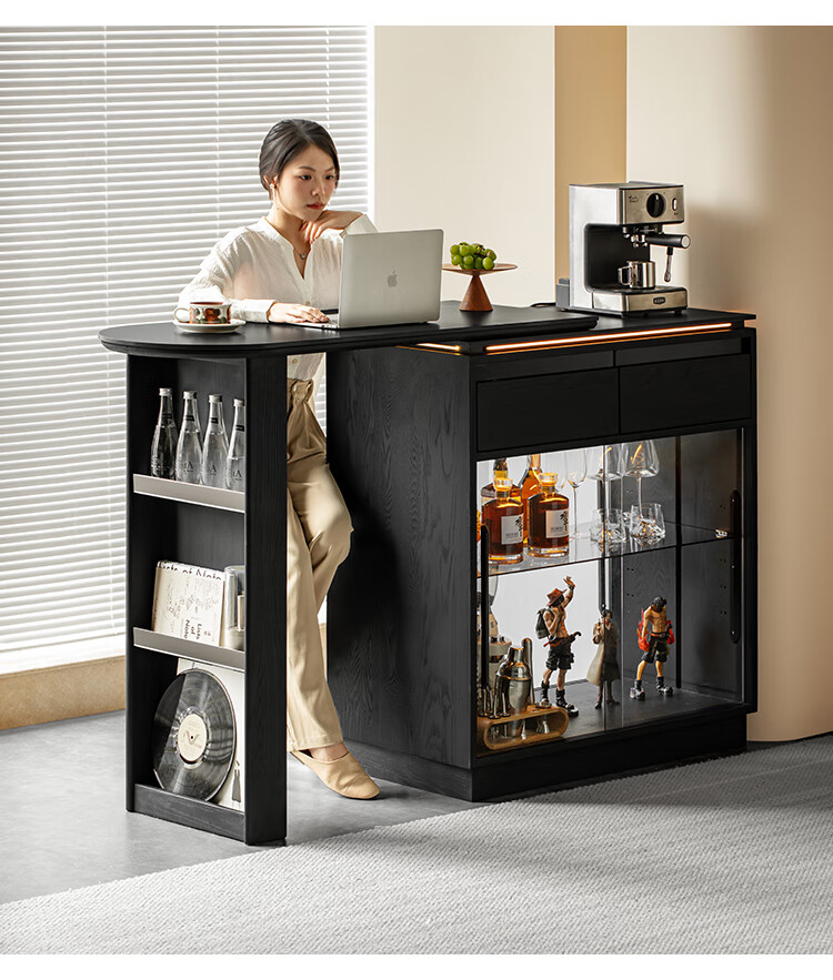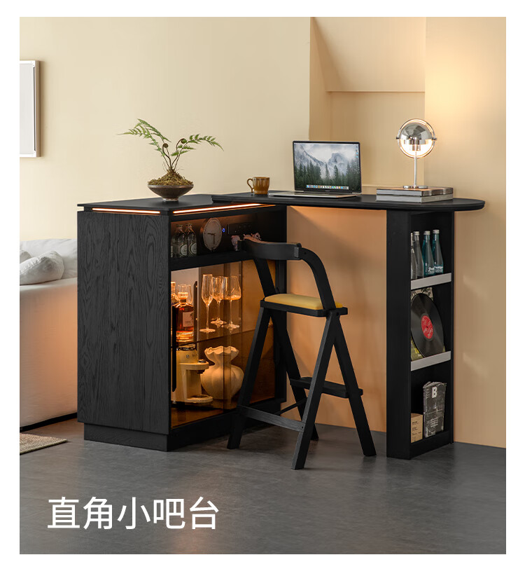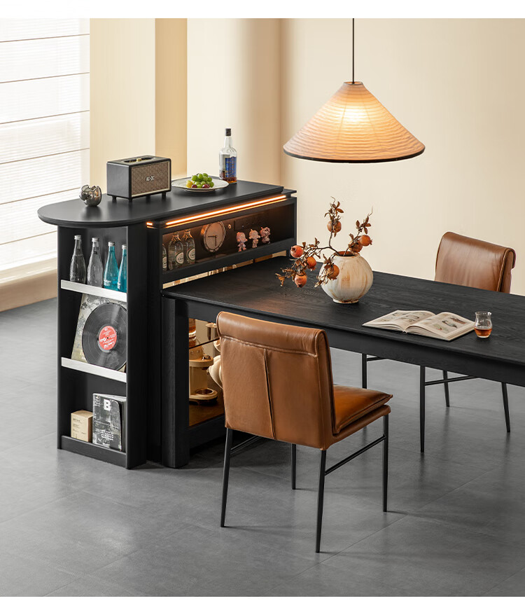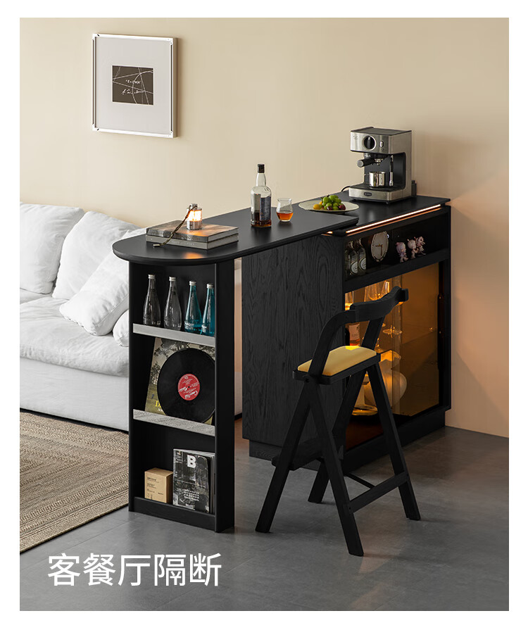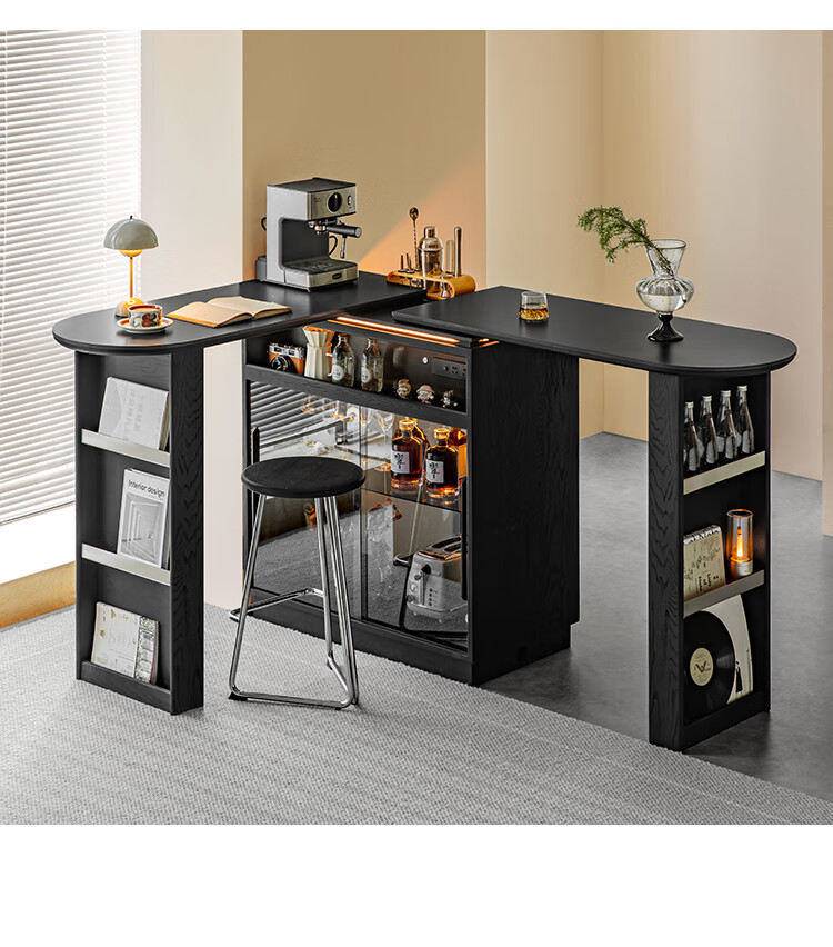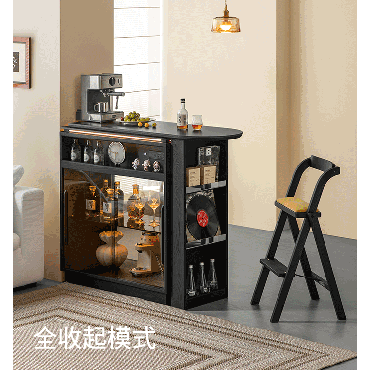Fanye Furniture Shiye Bar Solid Wood Telescopic Table Black Sideboard Wine Cabinet Storage Cabinet Home Multifunctional Partition Side Cabinet Ash Shiye Bar Table + Xiangye Bar Stool