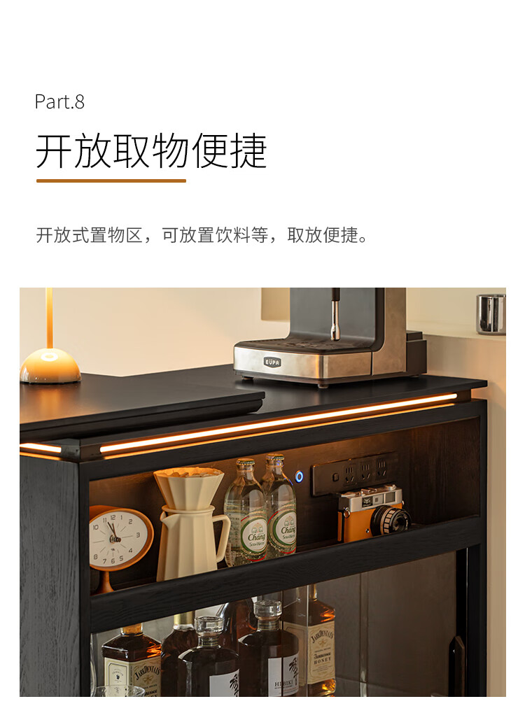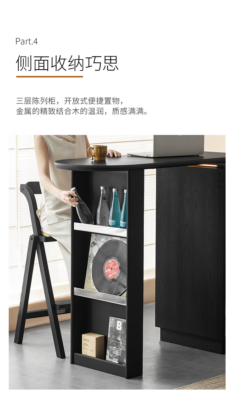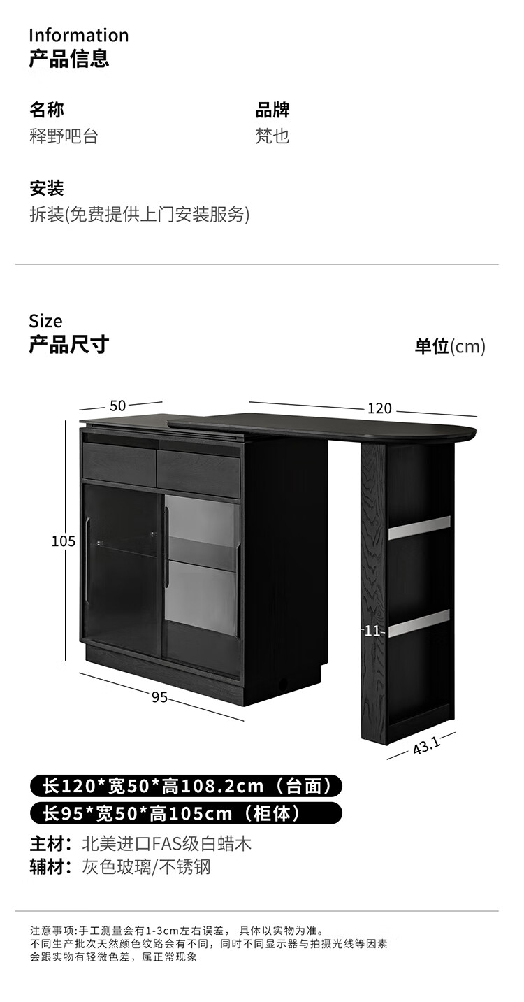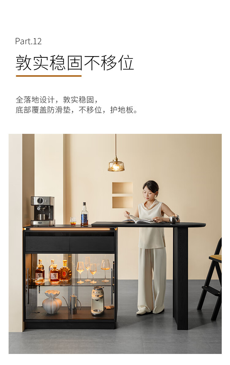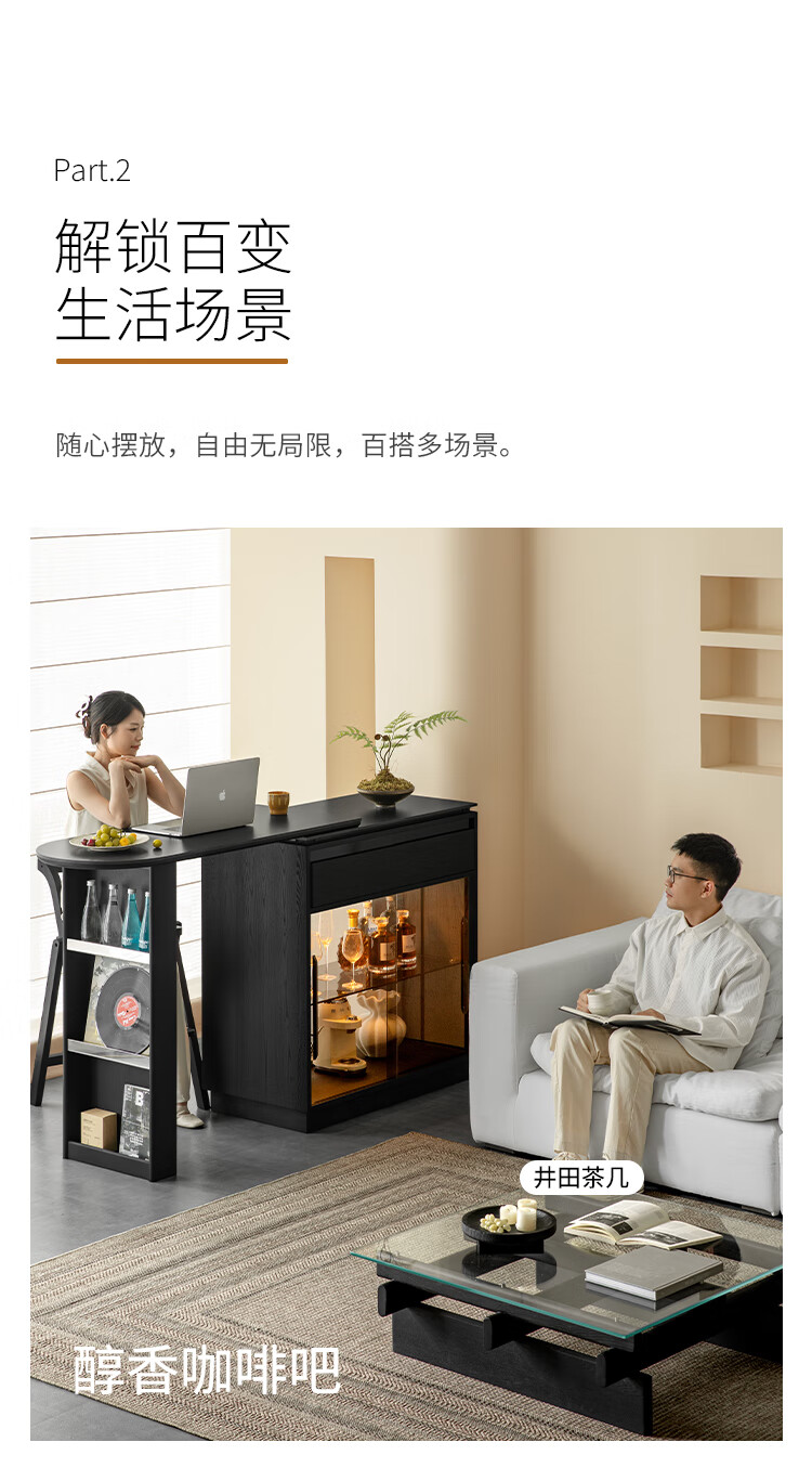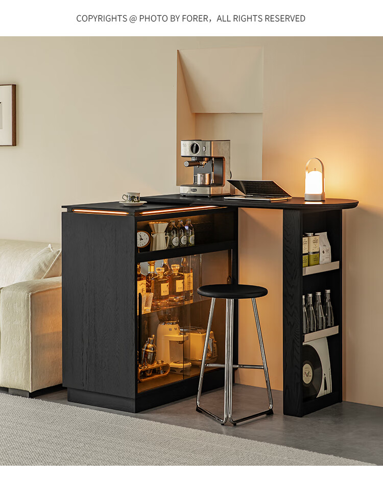 Fanye Furniture Shiye Bar Solid Wood Telescopic Table Black Sideboard Wine Cabinet Storage Cabinet Home Multifunctional Partition Side Cabinet Ash Shiye Bar Table + Xiangye Bar Stool