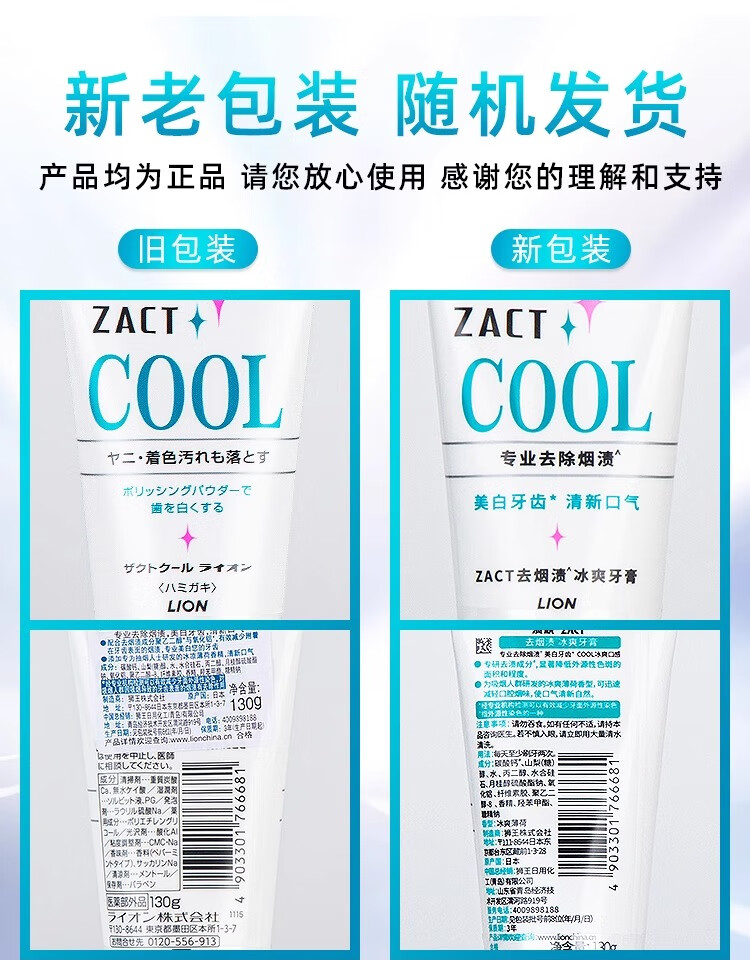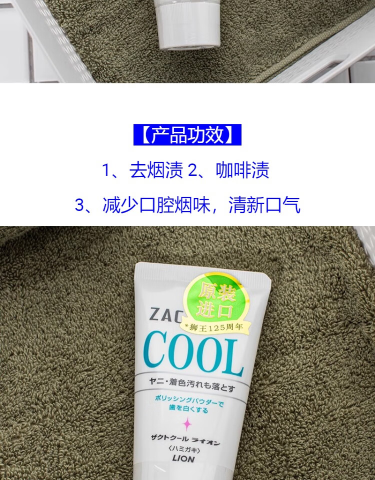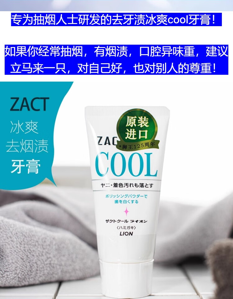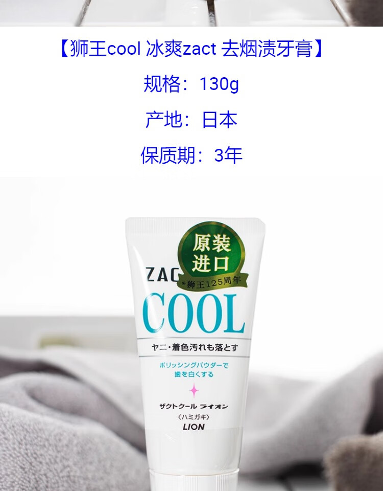 Lion's cool zact toothpaste removes tobacco stains, removes yellow stains for men, freshens breath, whitens and cleans the mouth. Ice cool toothpaste removes tobacco stains 130g*3 pieces