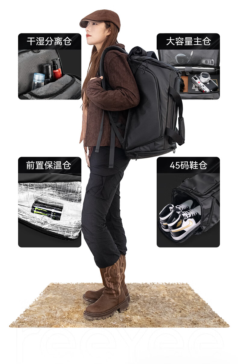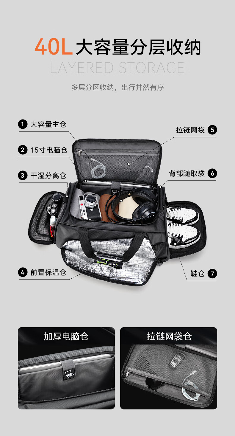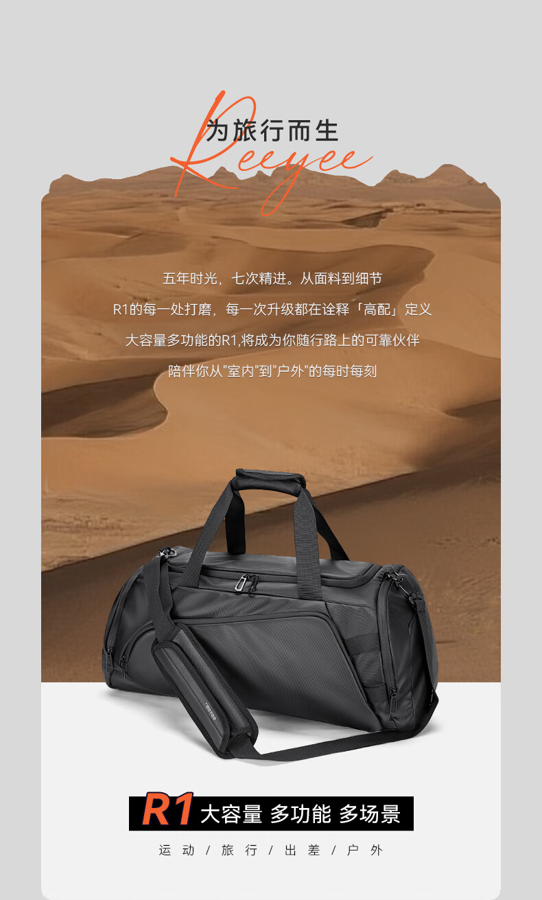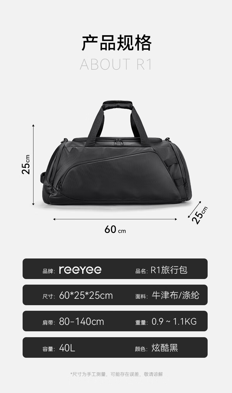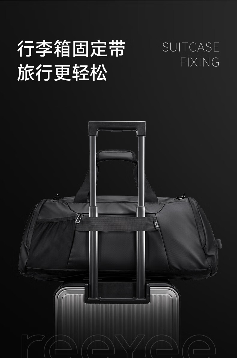 REEYEE large capacity men's travel bag multifunctional fitness bag dry and wet separation handbag waterproof boarding bag luggage bag cool black upgraded version 40L