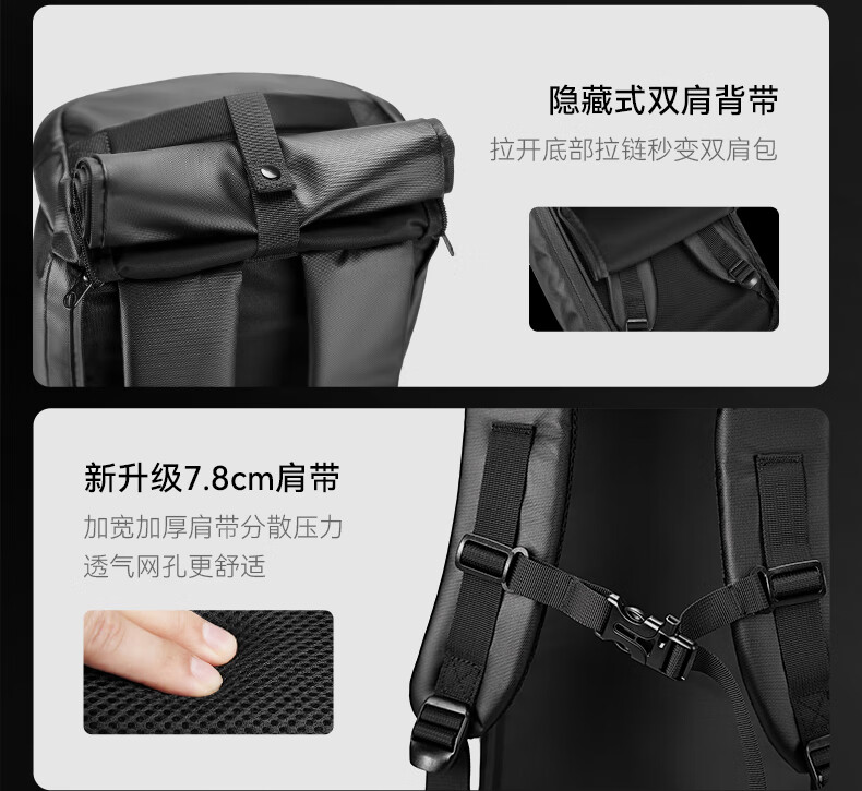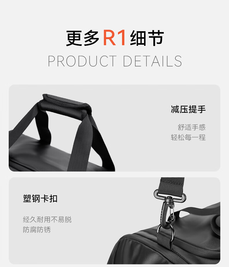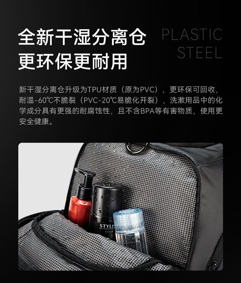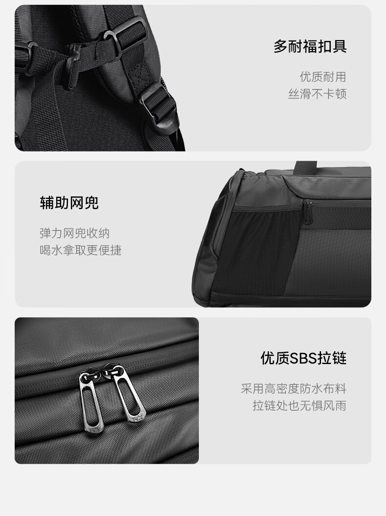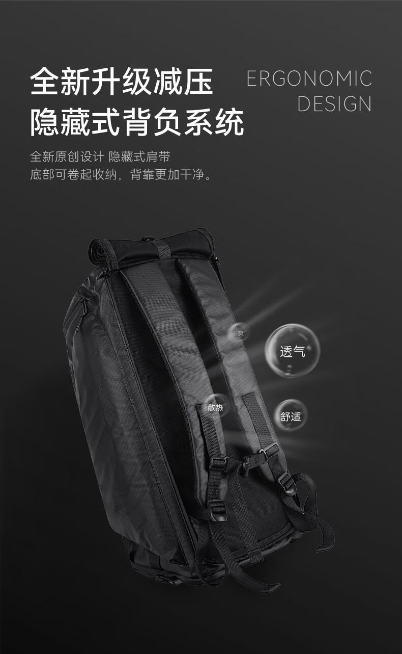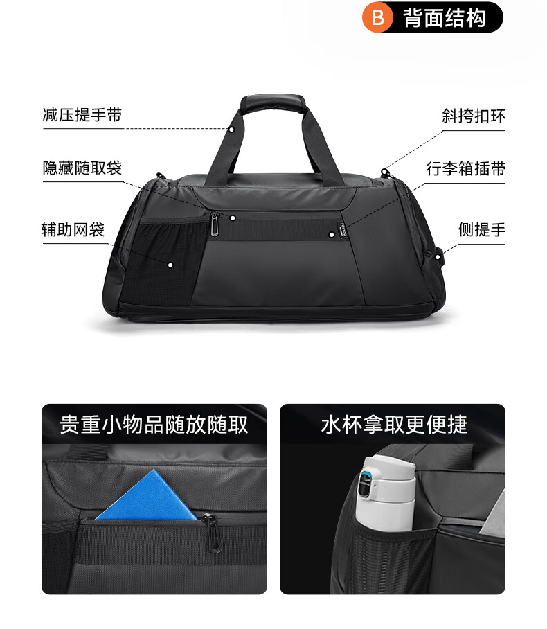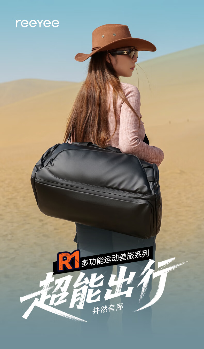 REEYEE large capacity men's travel bag multifunctional fitness bag dry and wet separation handbag waterproof boarding bag luggage bag cool black upgraded version 40L