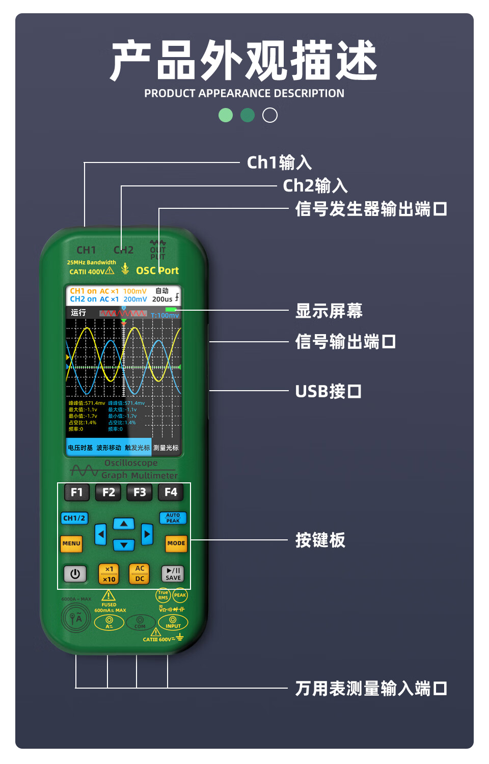 BSIDE O7 oscilloscope multimeter signal generator three-in-one portable dual-channel 25MHz broadband