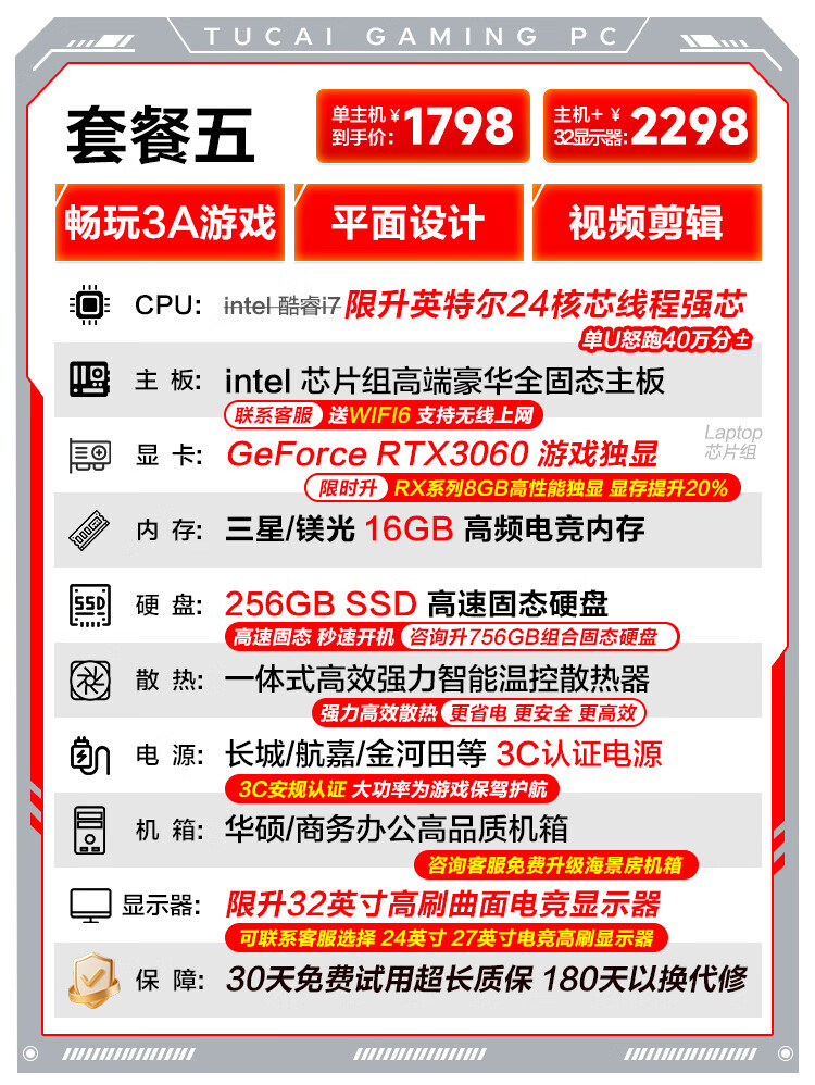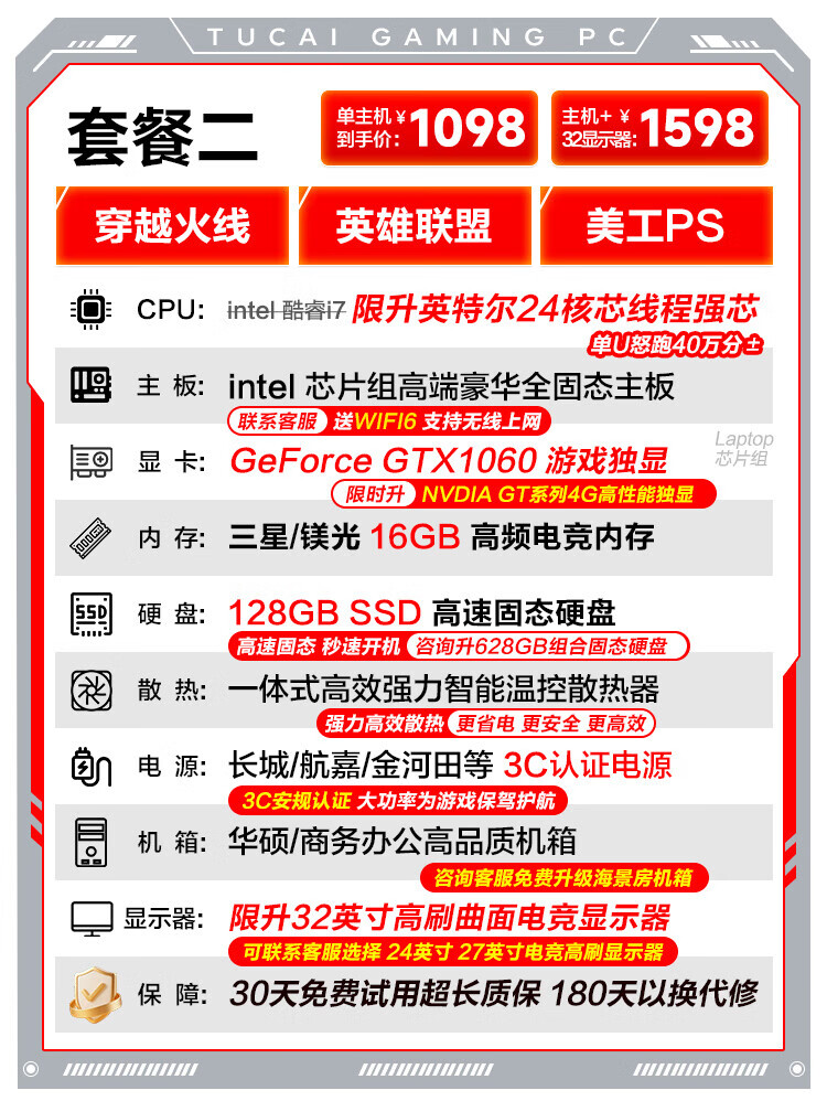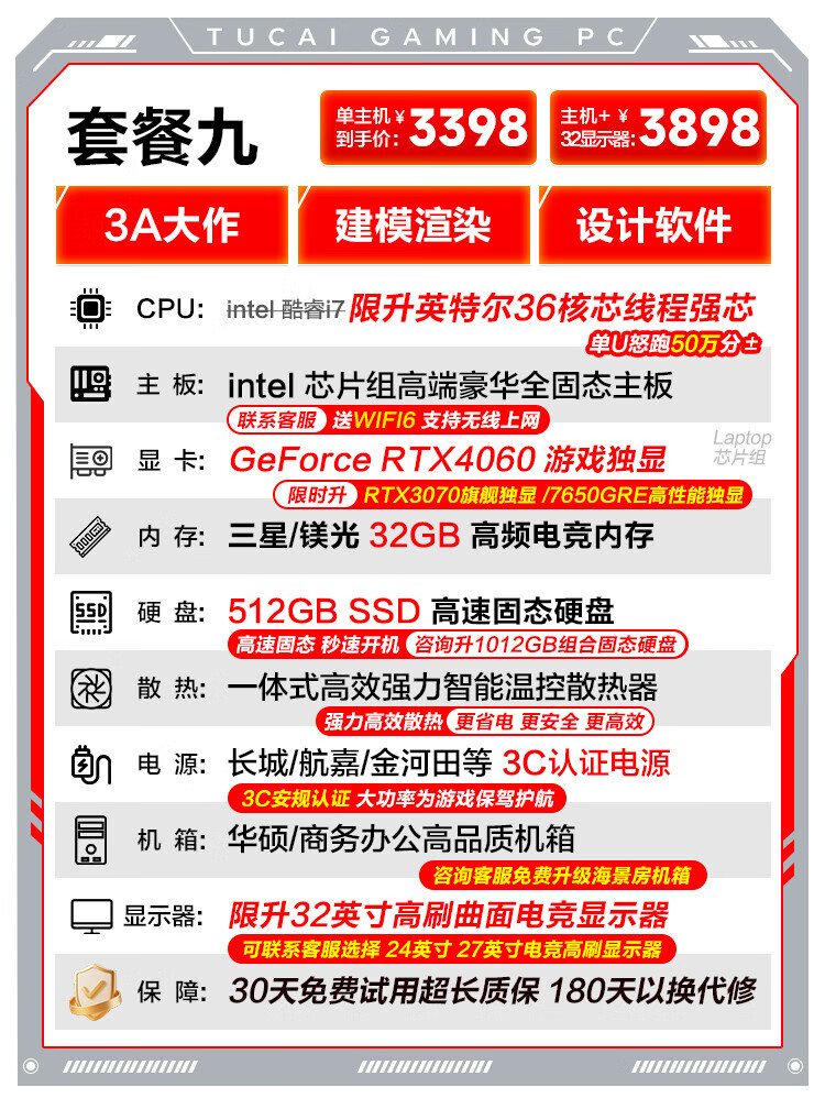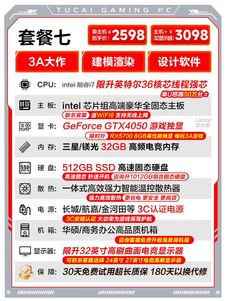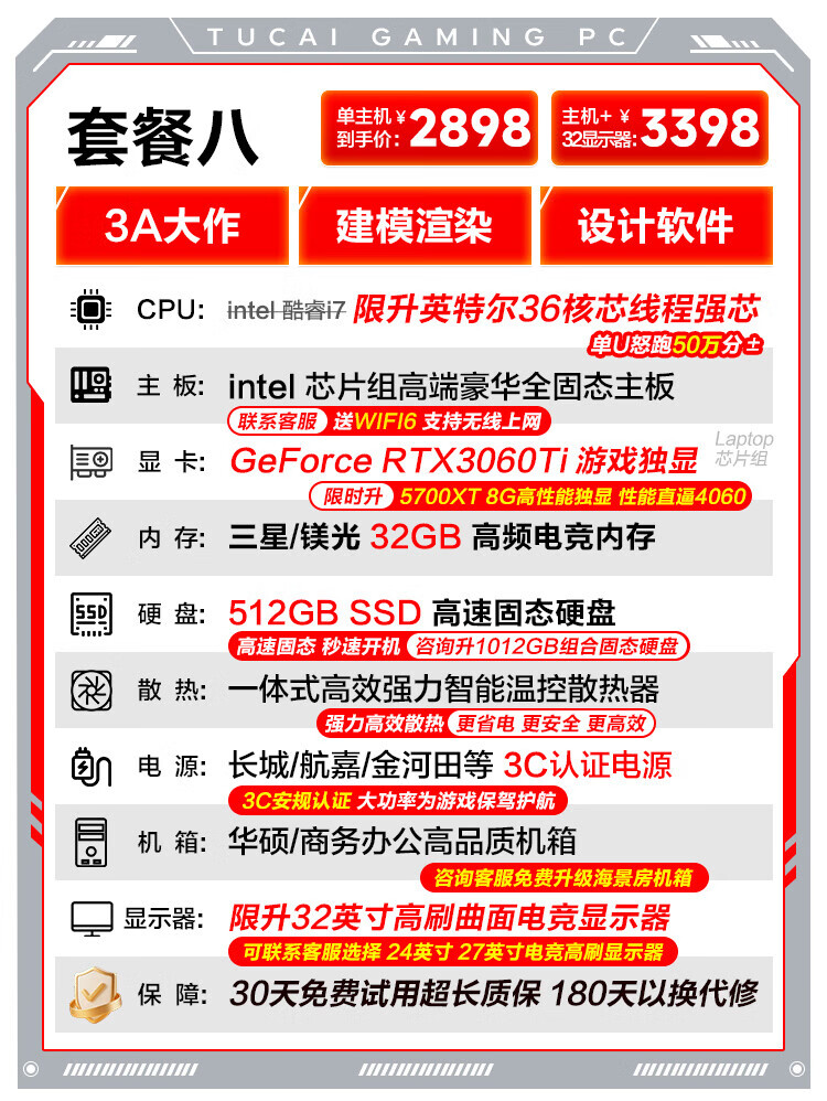 ASUS (ASUS) Core i7 liter 36-core RTX4060 desktop computer host independent graphics business office home game design rendering second-hand computer complete set single host free keyboard and mouse set set of eight Intel 36 core/RTX3060Ti/flagship game