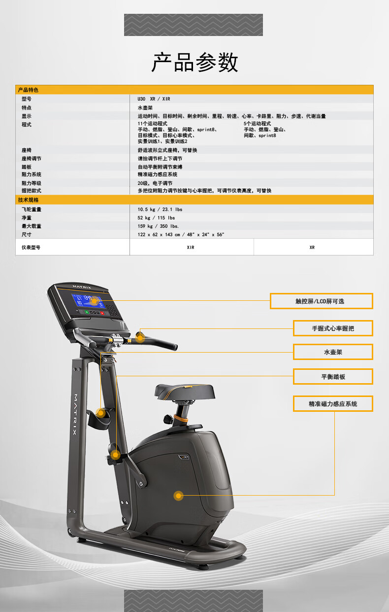 JOHNSON Matrix Indoor Exercise Bike Fitness Equipment High-End Upright Exercise Bike Automatic Balance U50U30 Matrix_Plug-in Color Screen U30XIR