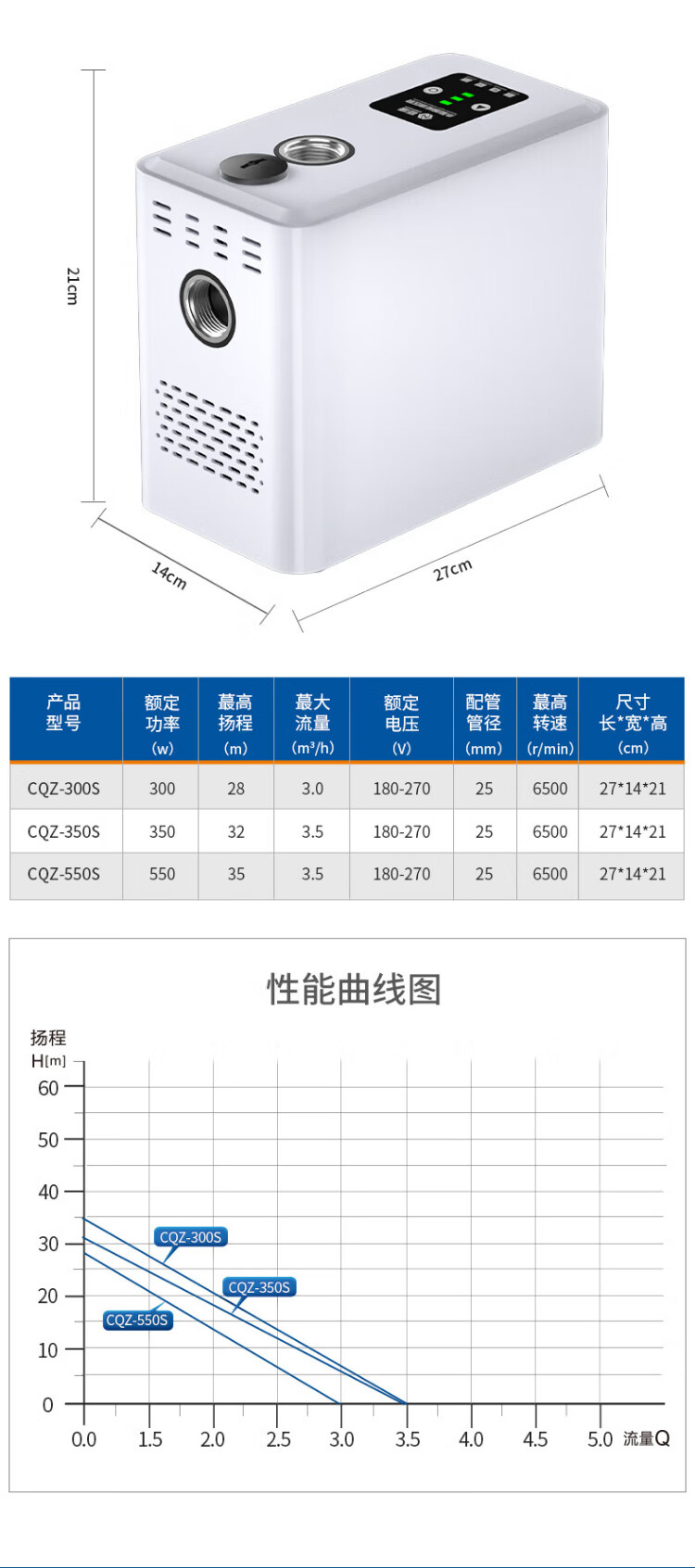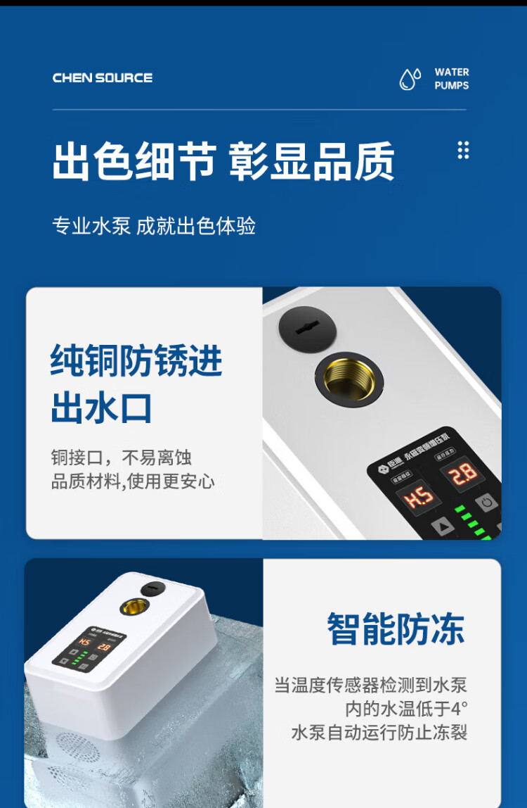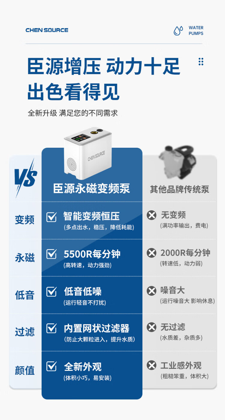 Chenyuan permanent magnet variable frequency booster pump household water heater fully automatic self-priming pump tap water variable frequency pump whole house water pump third gear - strong booster enhanced version 550W