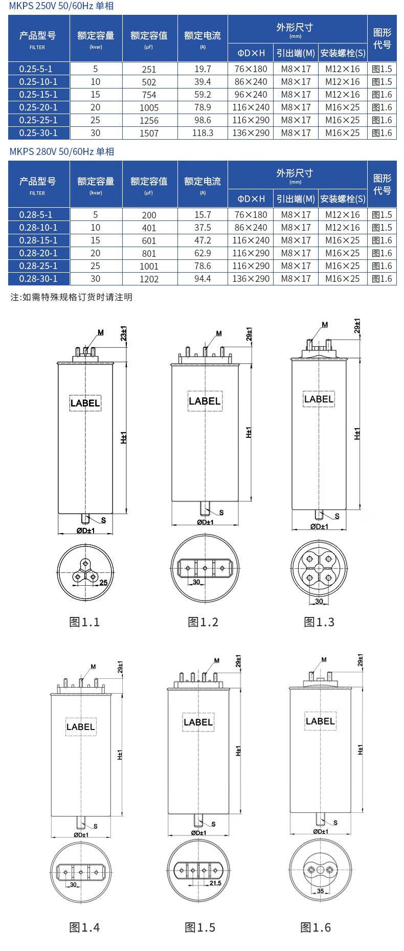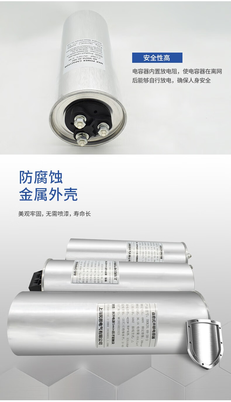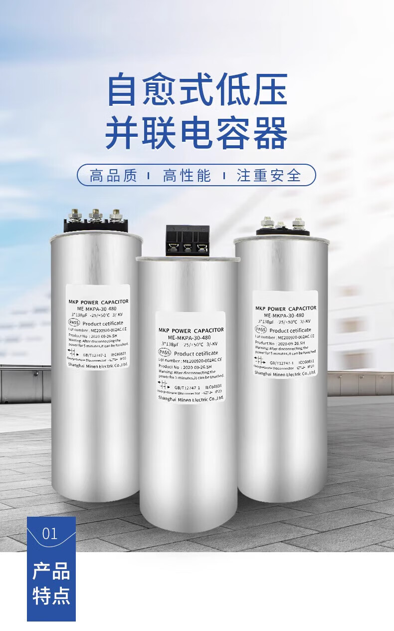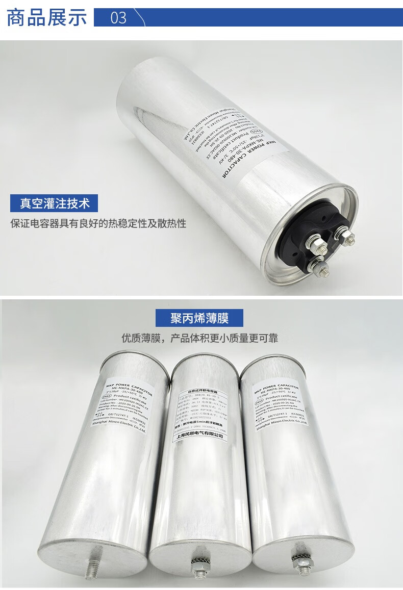 Single-phase cylindrical parallel capacitor self-healing low-voltage filter film reactive power compensation 250V280V Dingzhi 0.25-5-3y0 (250V)