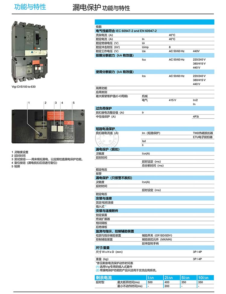 German plastic case circuit breaker CVS 4P 100F160F 160A250A400A630A with leakage VIGI Vigi CVS630F TMD 4P 500A