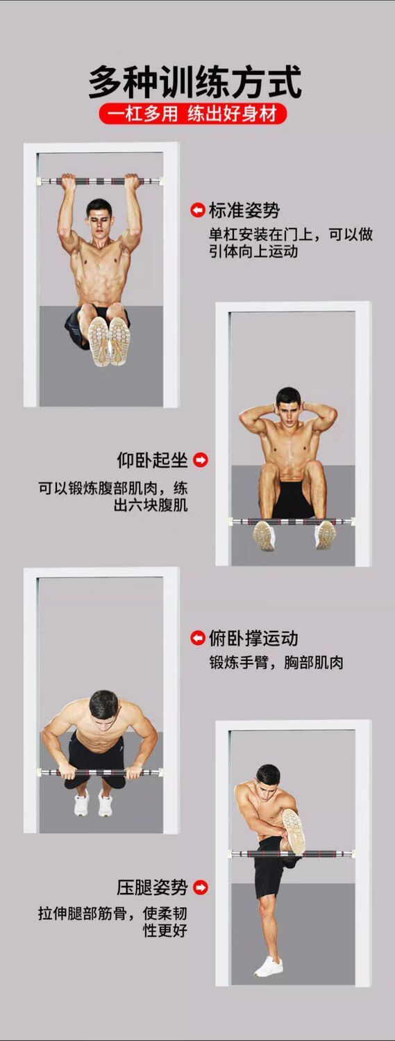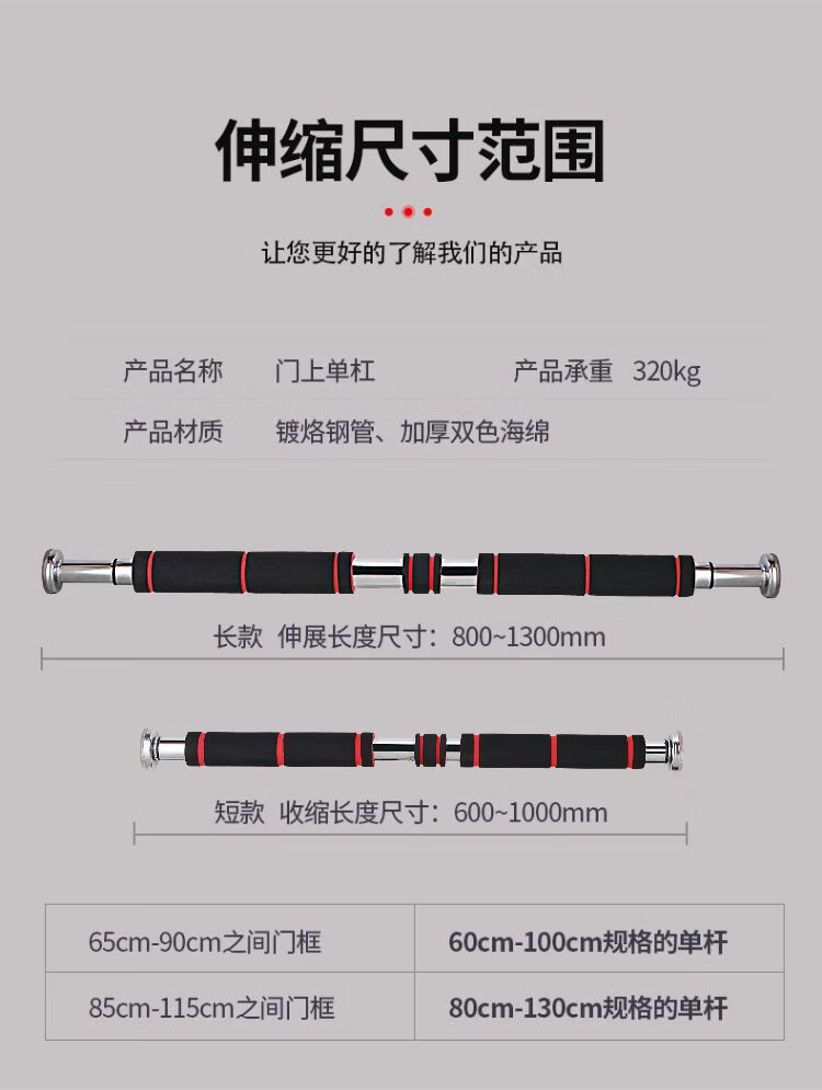 Horizontal bar home indoor student adult fitness equipment indoor door frame punch-free pull-up telescopic bar suitable for door frames 80-130 cm