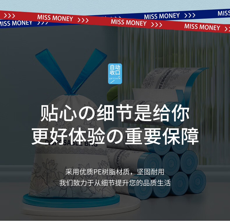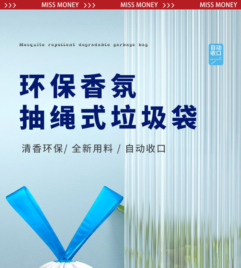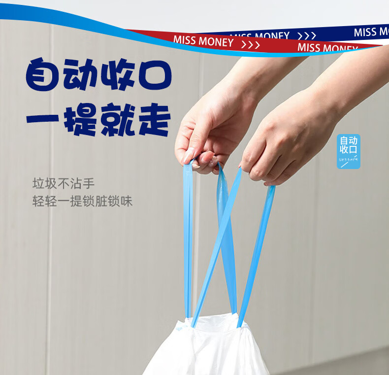 Garbage bag household drawstring portable kitchen student dormitory automatic closing 75 pieces