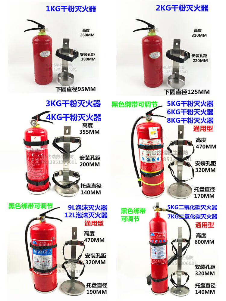 Fire extinguisher fixed bracket hanger pure stainless steel shelf kg car universal fire extinguisher bracket smart 5-7KG carbon dioxide fire extinguisher bracket (iron) (tightening hoop