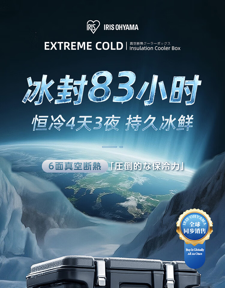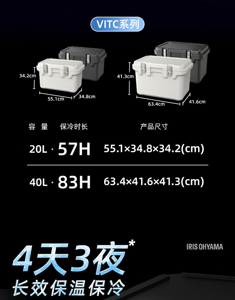 IRIS insulated box car outdoor refrigerated camping picnic box food cold storage and freshness commercial ice cube Alice ice bucket 40L charcoal ash cold storage 83H (free ice bag)