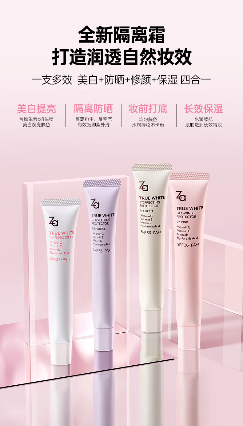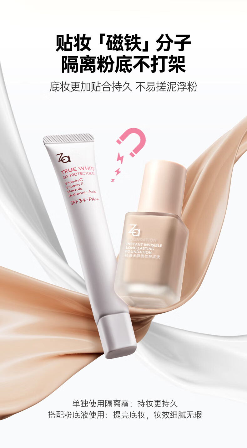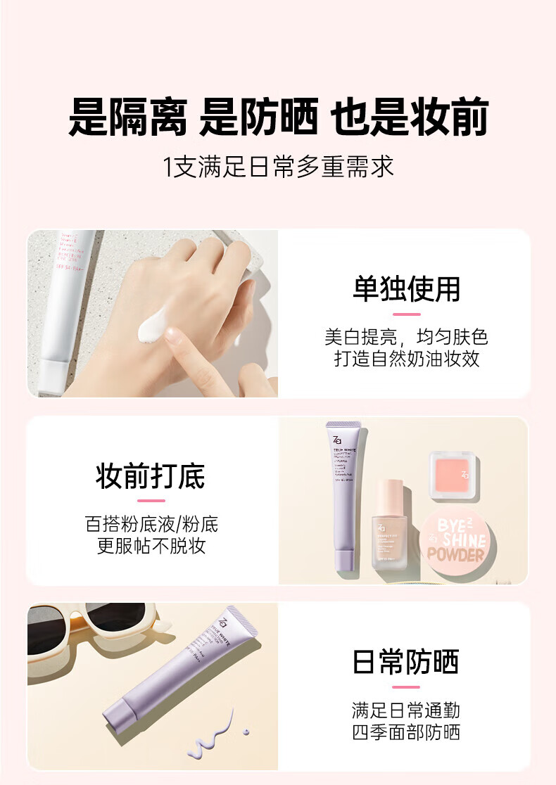 Ji Rui (ZA) isolation cream Ji Rui sun protection, whitening, concealer and brightening three-in-one women's cosmetic gift, small white tube 35g, natural skin color