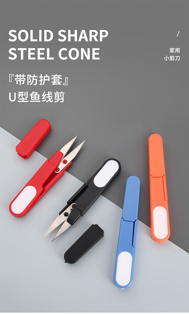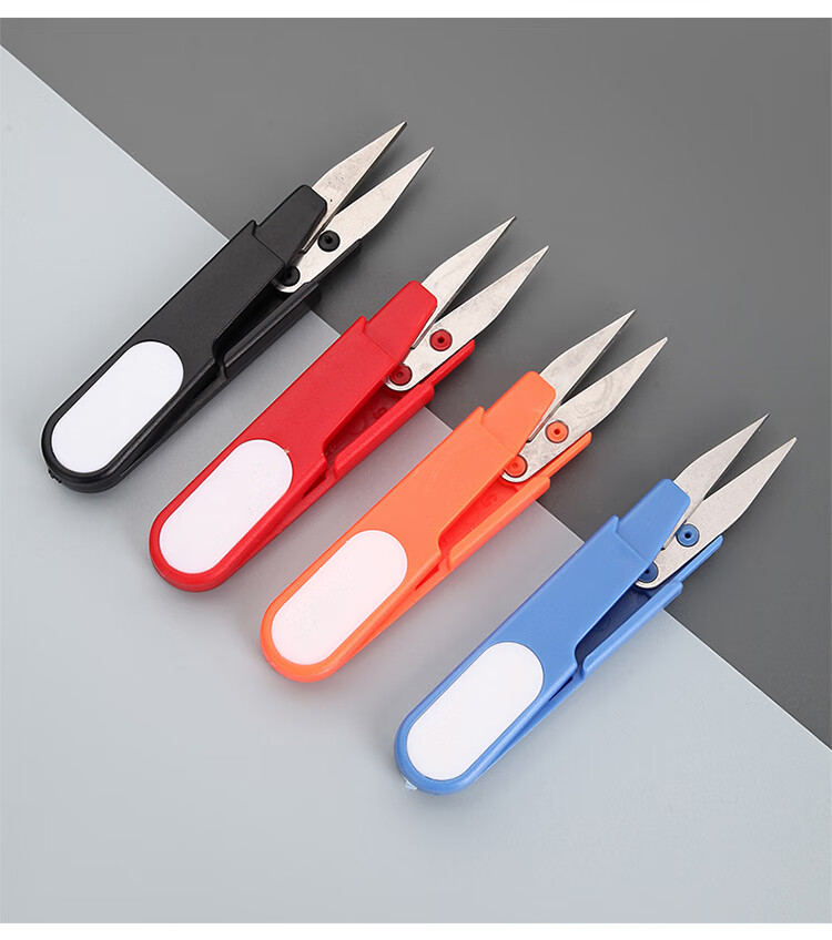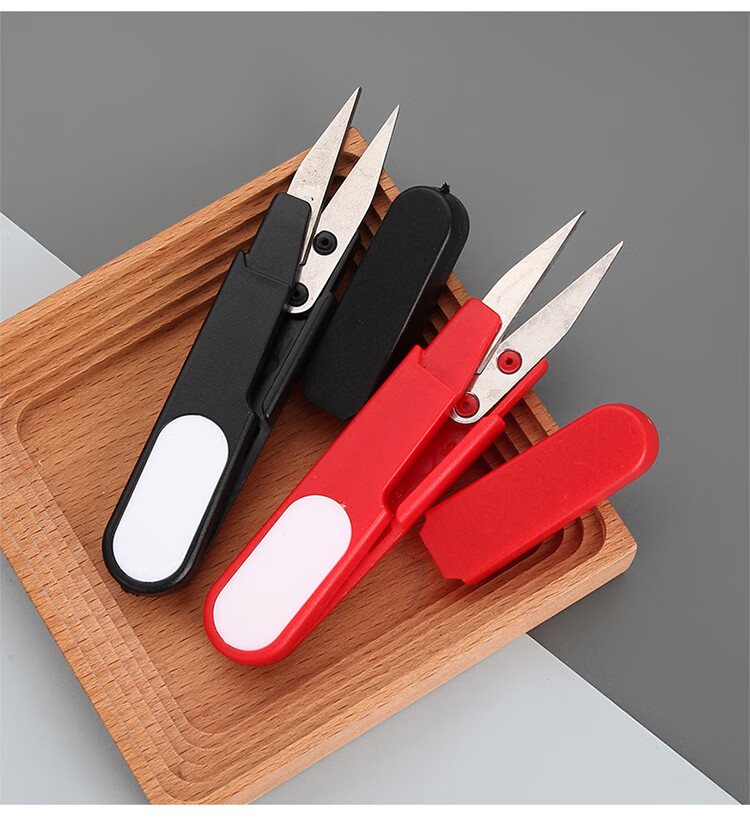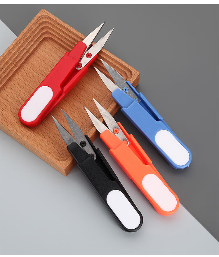 DIY tools U-shaped capped fish thread head mini colorful U-shaped transparent capped ks small yarn scissors with shell U-shaped scissors color (random color) 1 pair