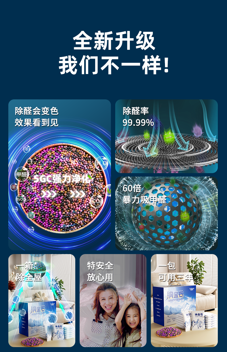 Najinshi Sentek official activated carbon three-color discoloration carbon new house decoration formaldehyde removal carbon packaging repair formaldehyde scavenger Najinshi 3kg (30-50 square meters)