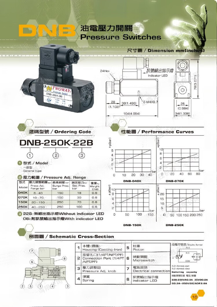Spot TWOWAY oil-electric pressure switch DNB-250K-06i DNB-250K-22B