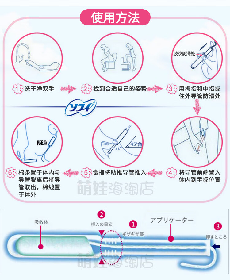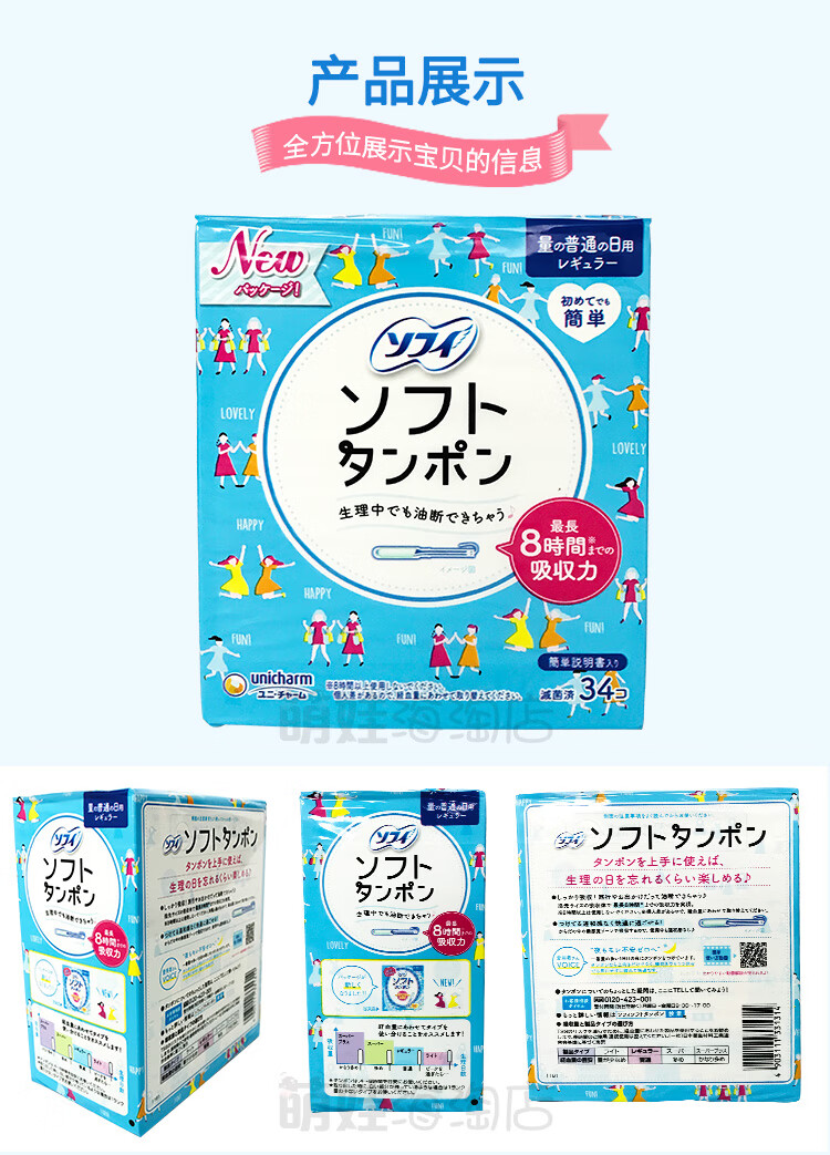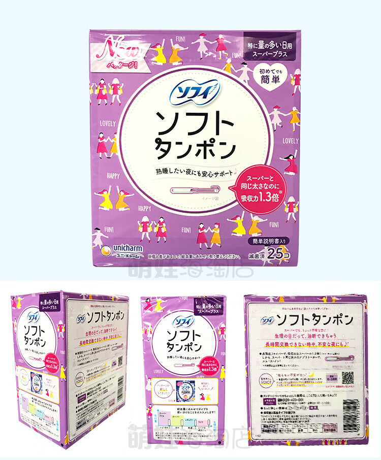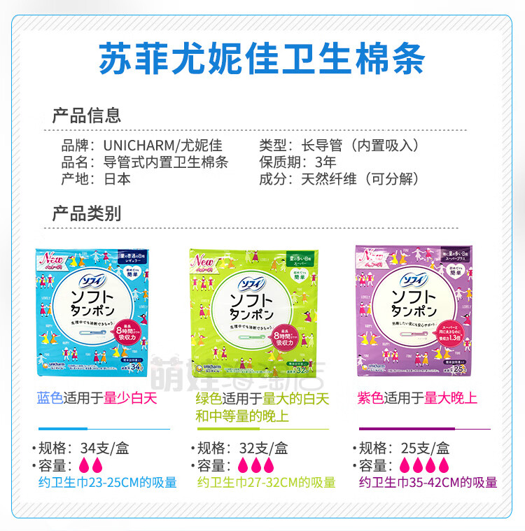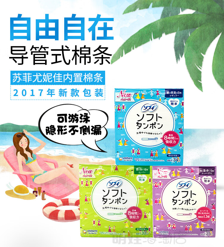 Unicharm Japanese built-in tampon female catheter-type Sophie day and night swimable menstrual swab sanitary napkin 3 small boxes (green 9 + blue 10 + purple 7) others