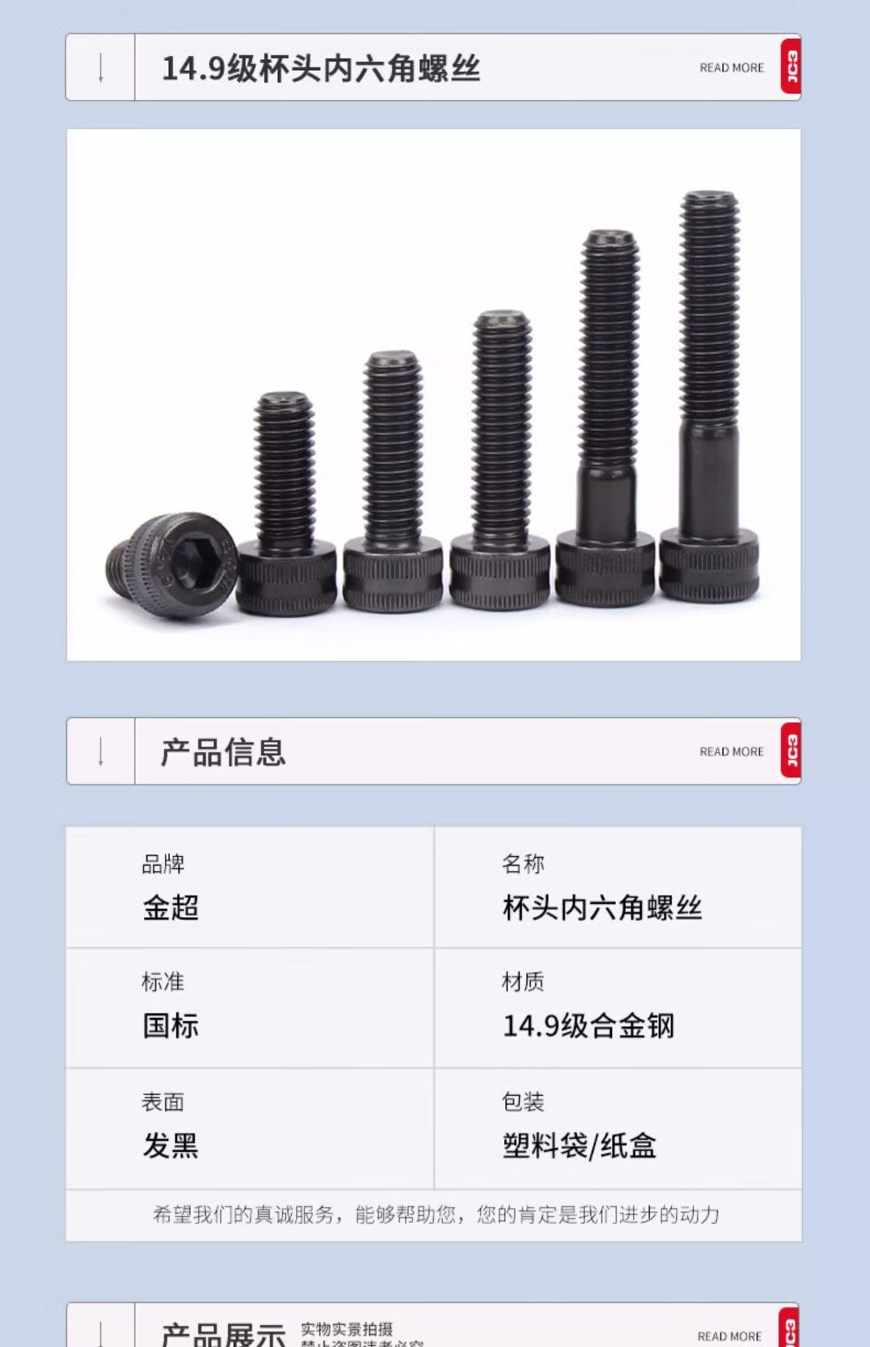 Jinchao grade 14.9 high strength hexagon socket screw bolt alloy steel extended screw M6M8M10M12M14M16 M16*100 half thread (1 piece)