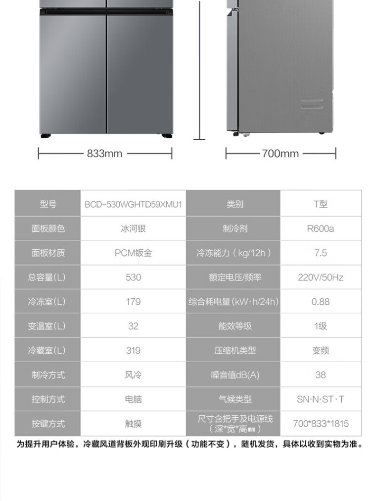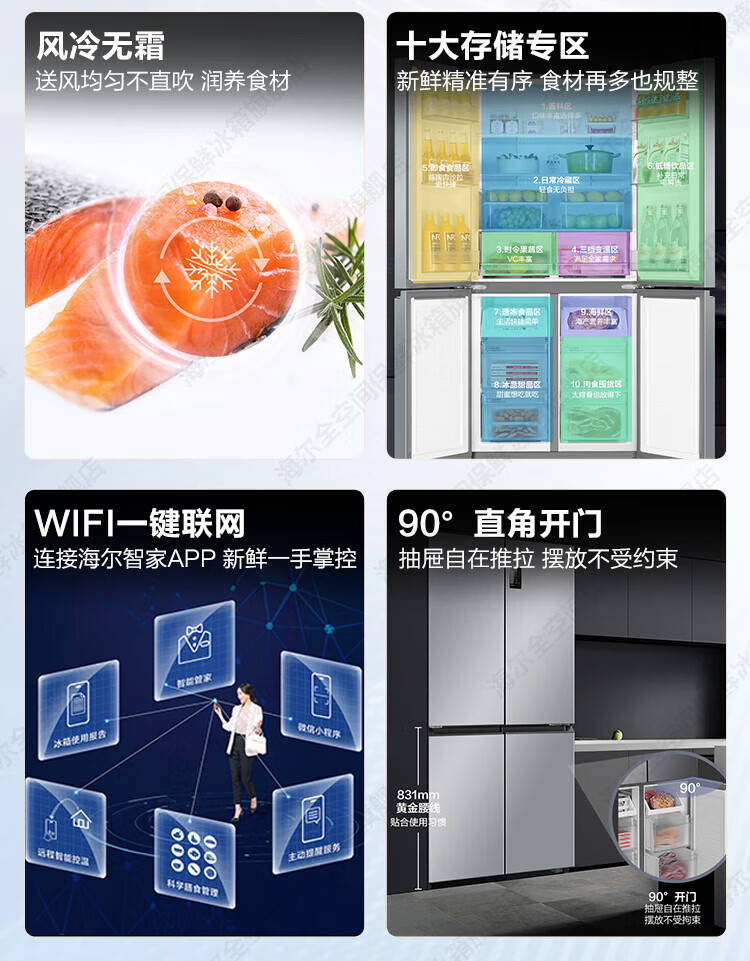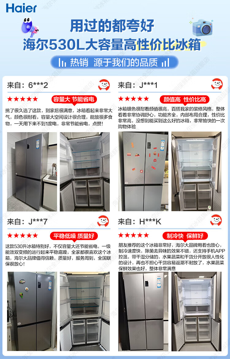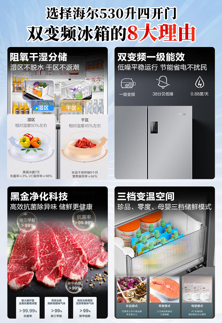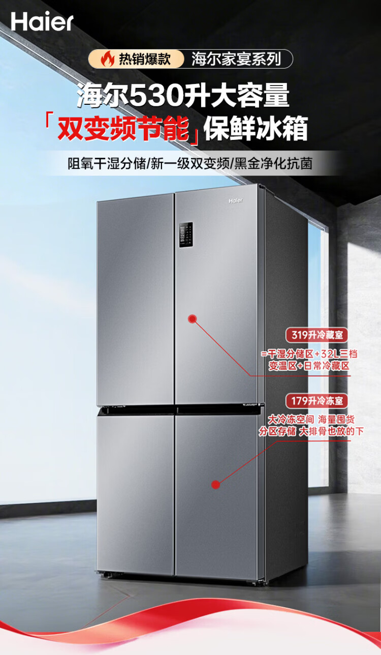 Haier refrigerator 530 liters four-door cross-door built-in refrigerator air-cooled frost-free first-class energy-saving dual-frequency household refrigerator trade-in subsidy Maternal and infant three-speed temperature change + black gold purification technology + dual-frequency first-class