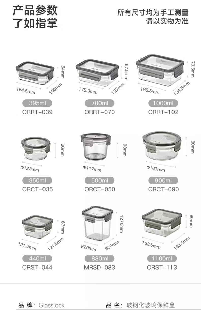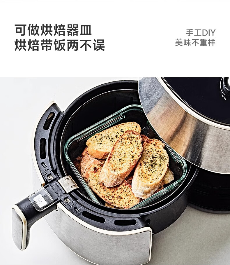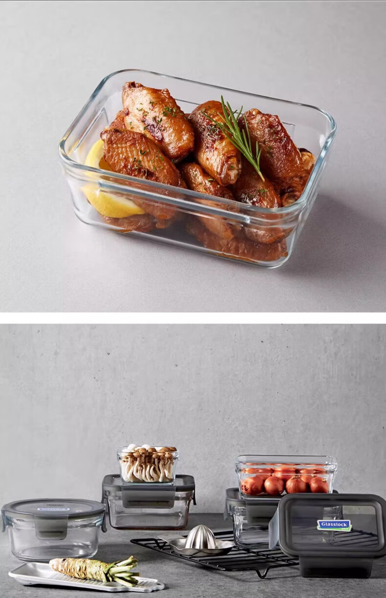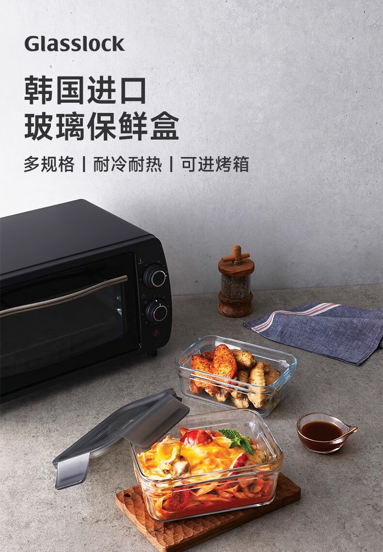 GLASSLOCK Korea imported tempered glass lunch box micro-roasted dual-purpose baking microwave refrigerator storage box 830ml square high tube black lid