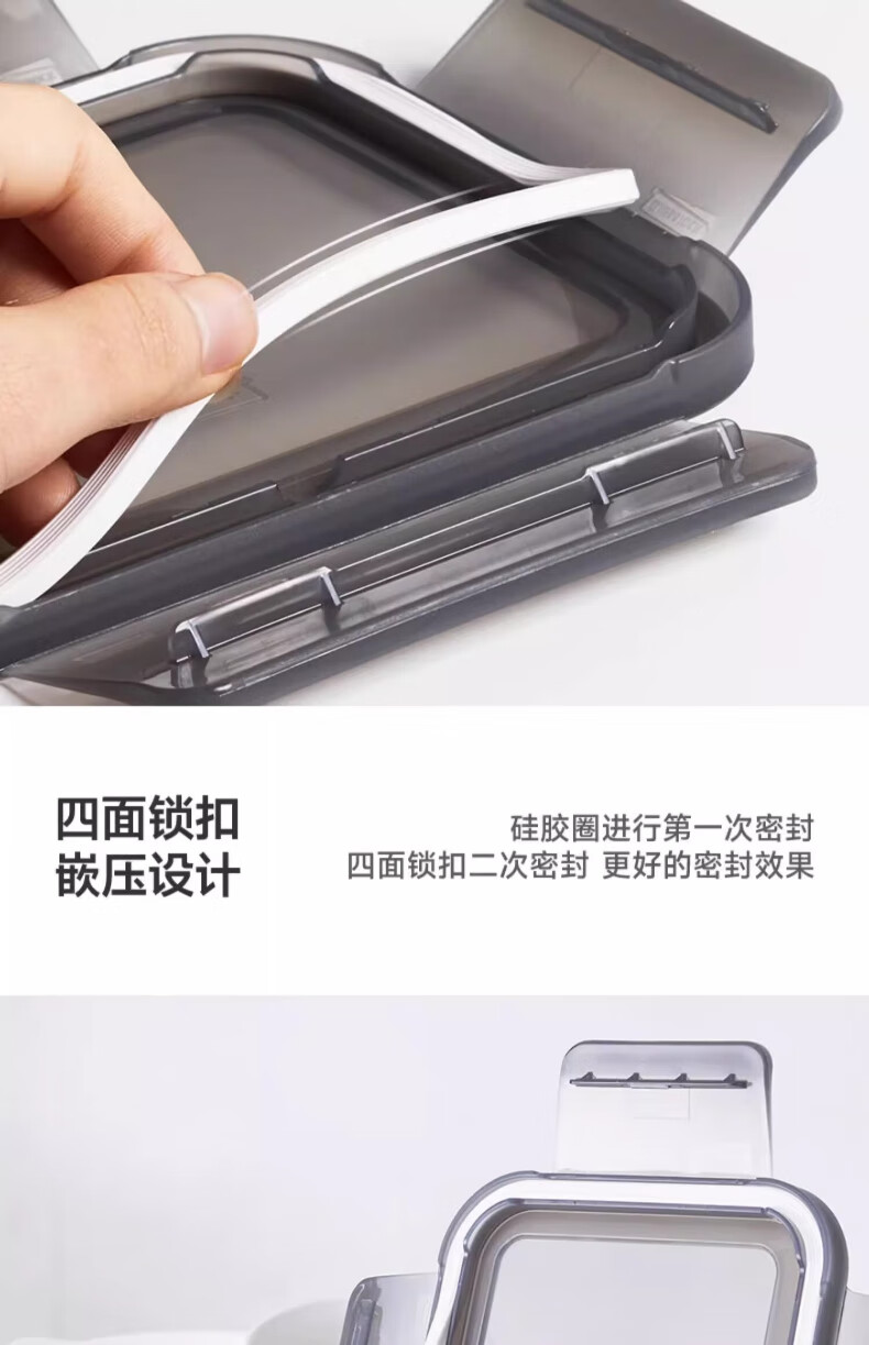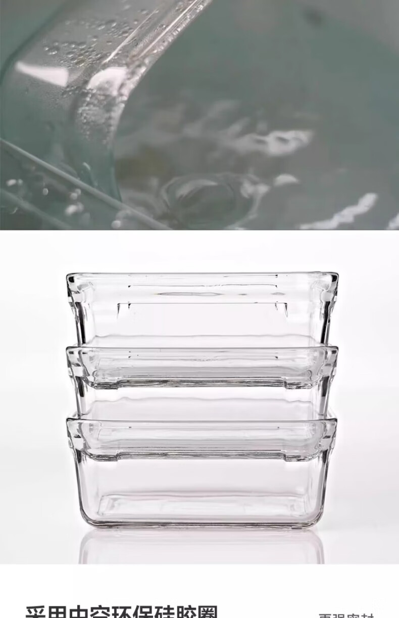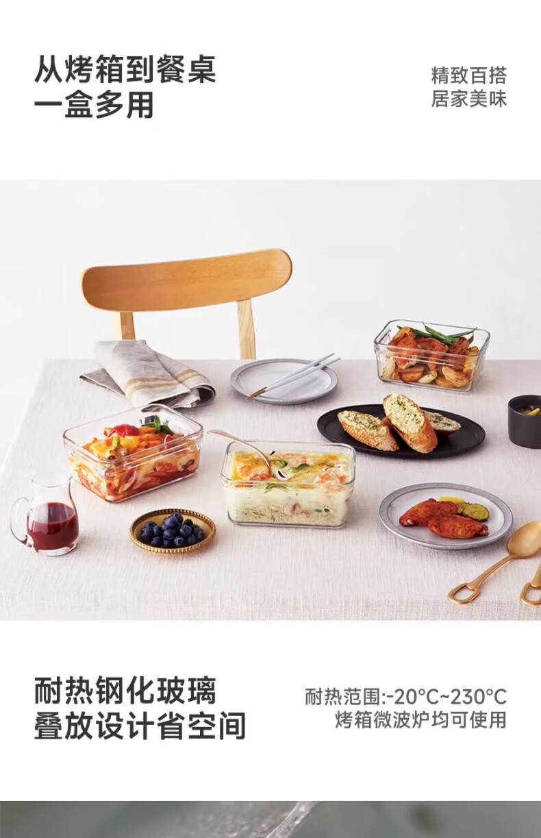 GLASSLOCK Korea imported tempered glass lunch box micro-roasted dual-purpose baking microwave refrigerator storage box 830ml square high tube black lid