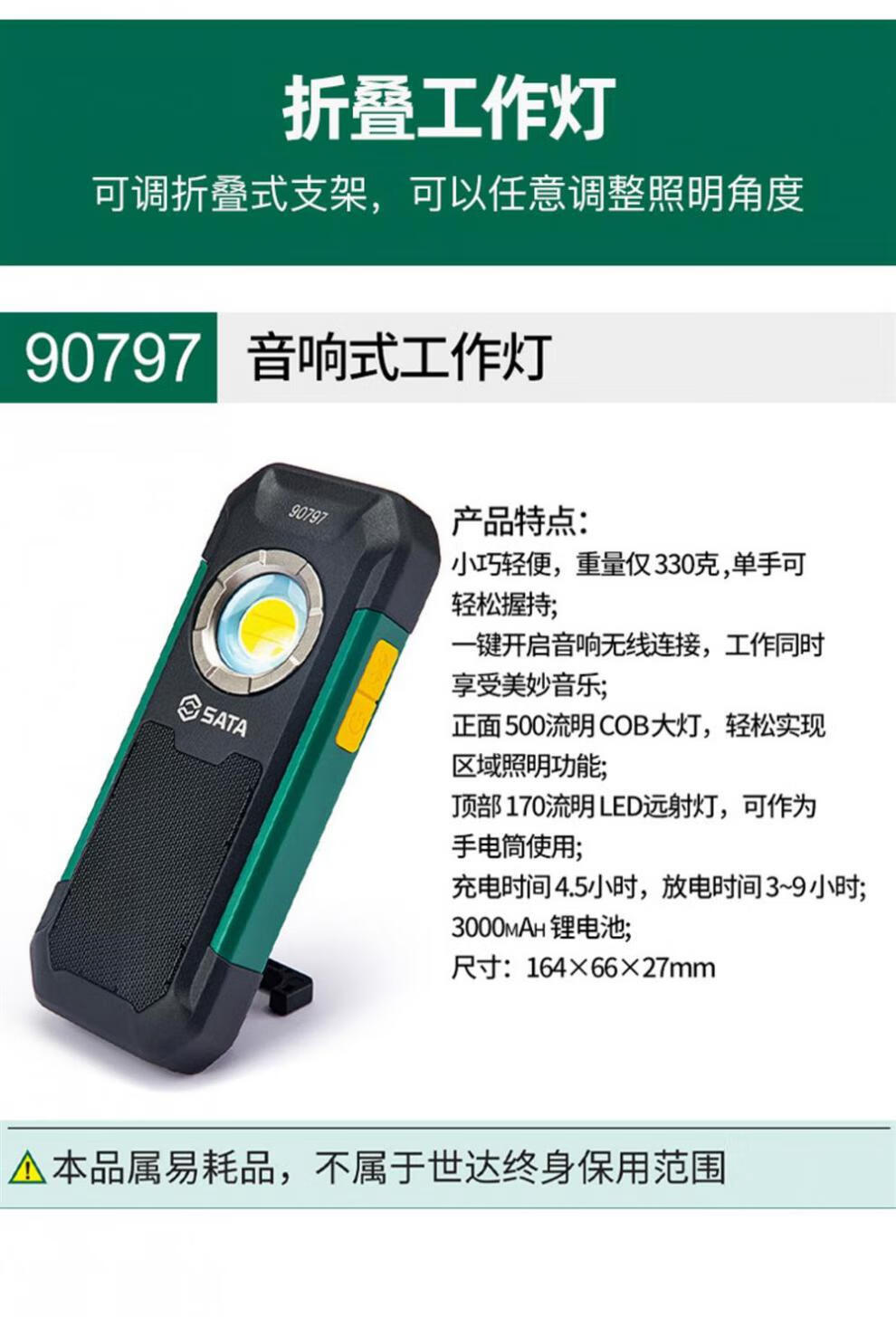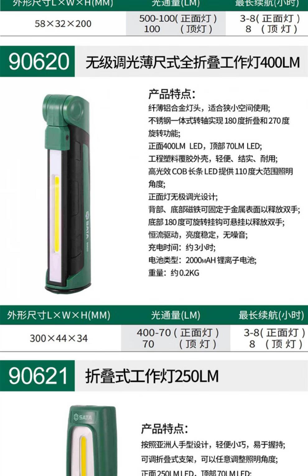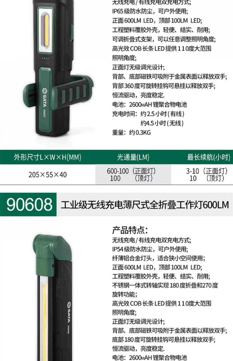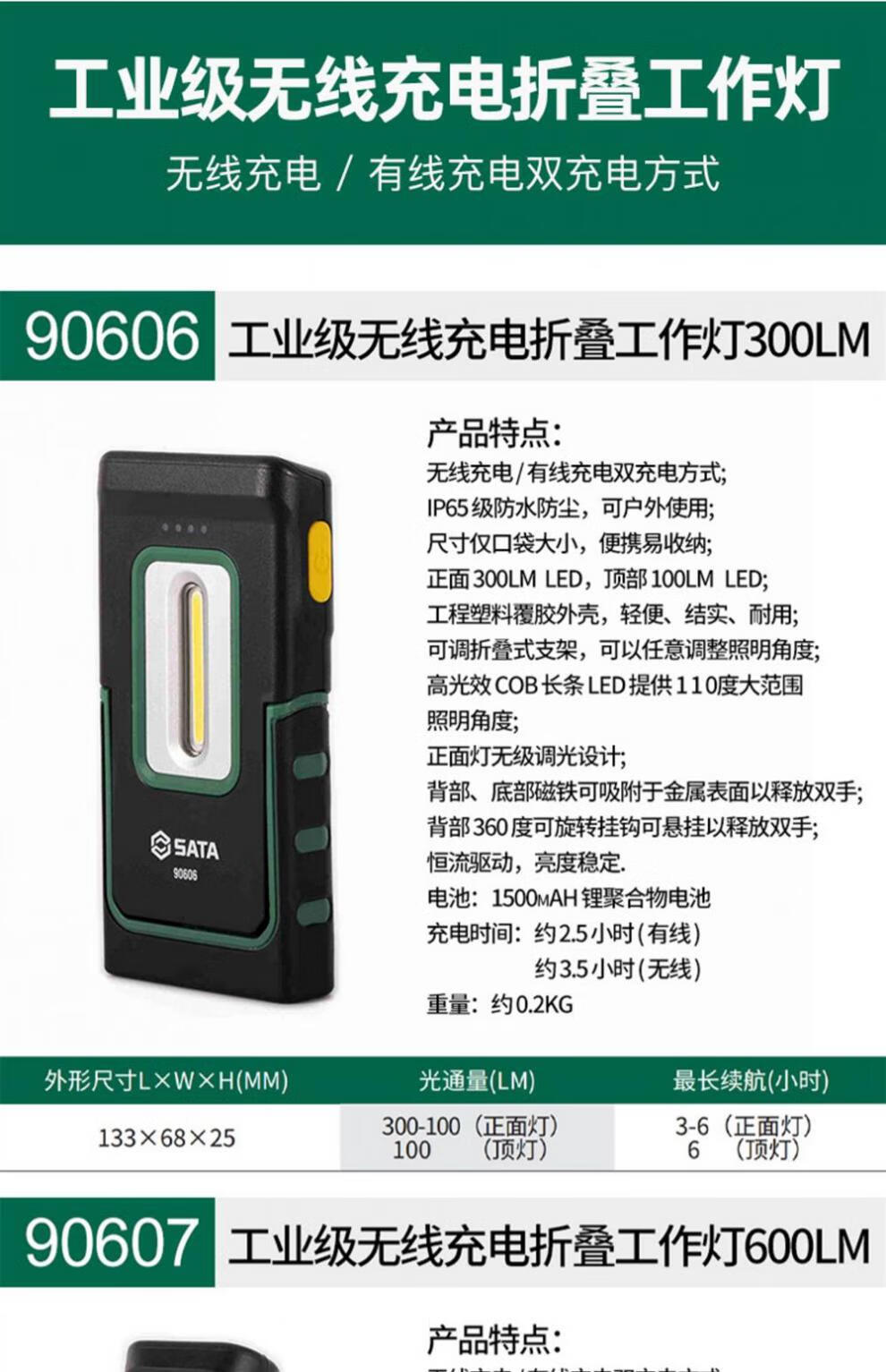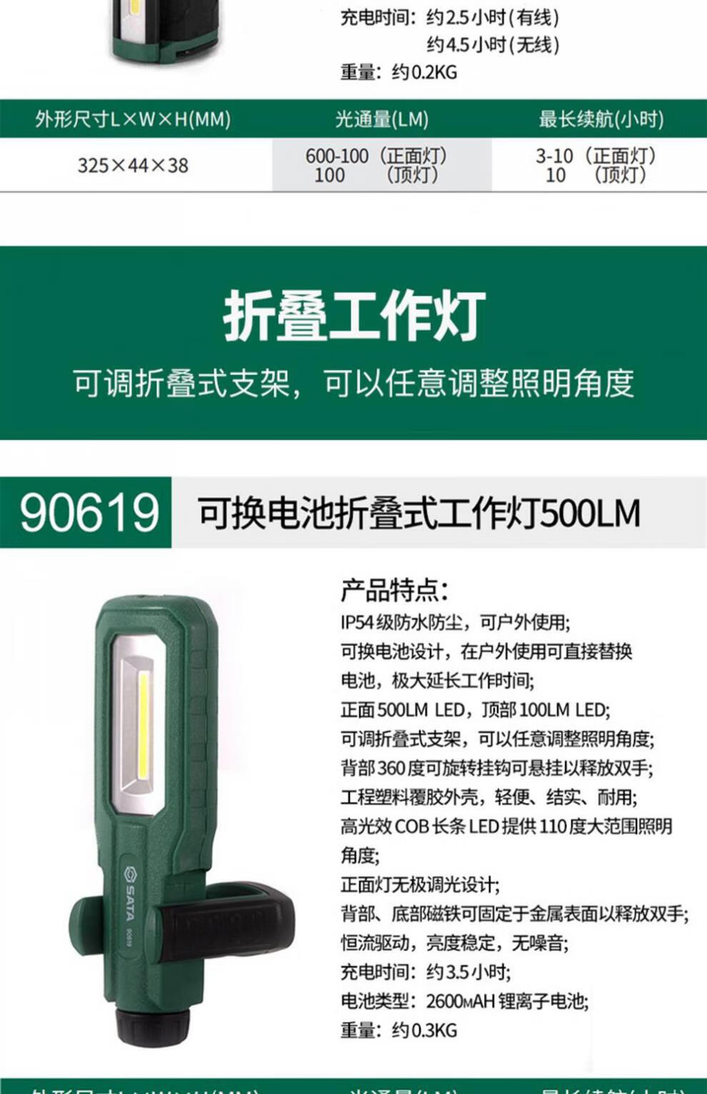 SATA Industrial Grade Work Light Wireless Charging Folding LED Strong Light Strong Magnetic Emergency Auto Repair Repair Light Flashlight 90619/Replaceable Battery Folding Model 500LM
