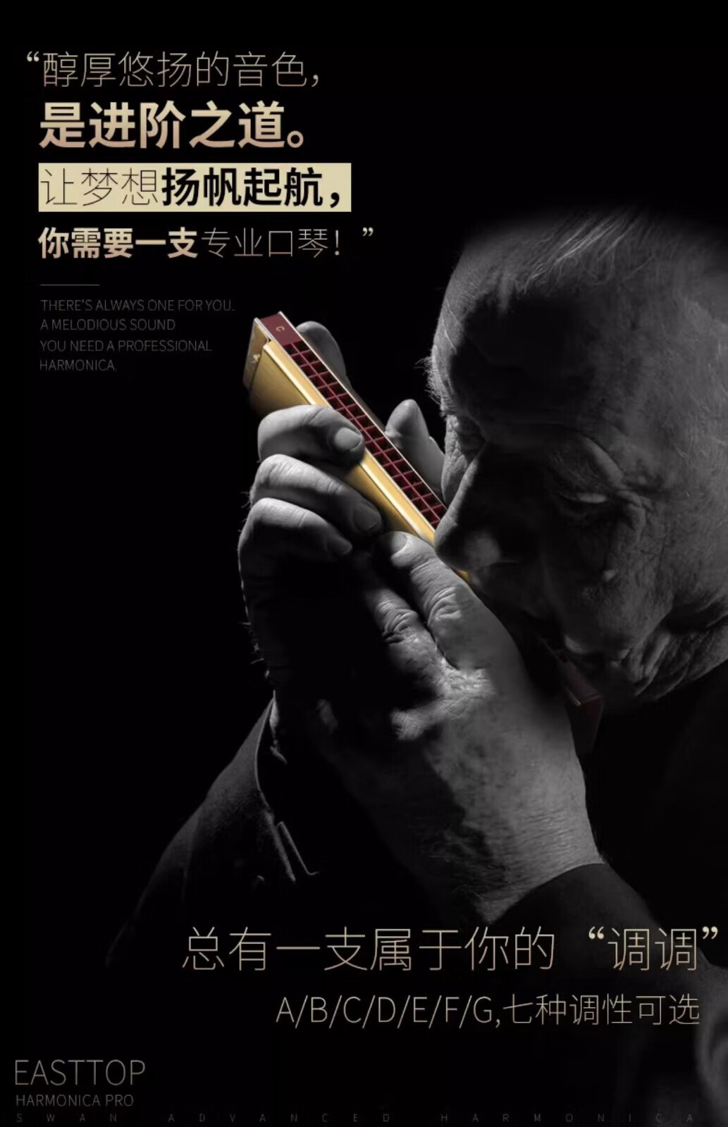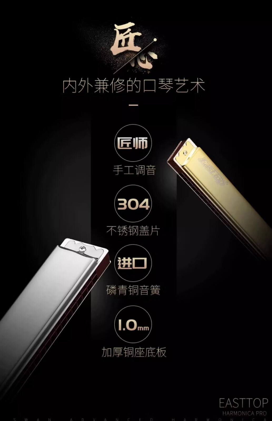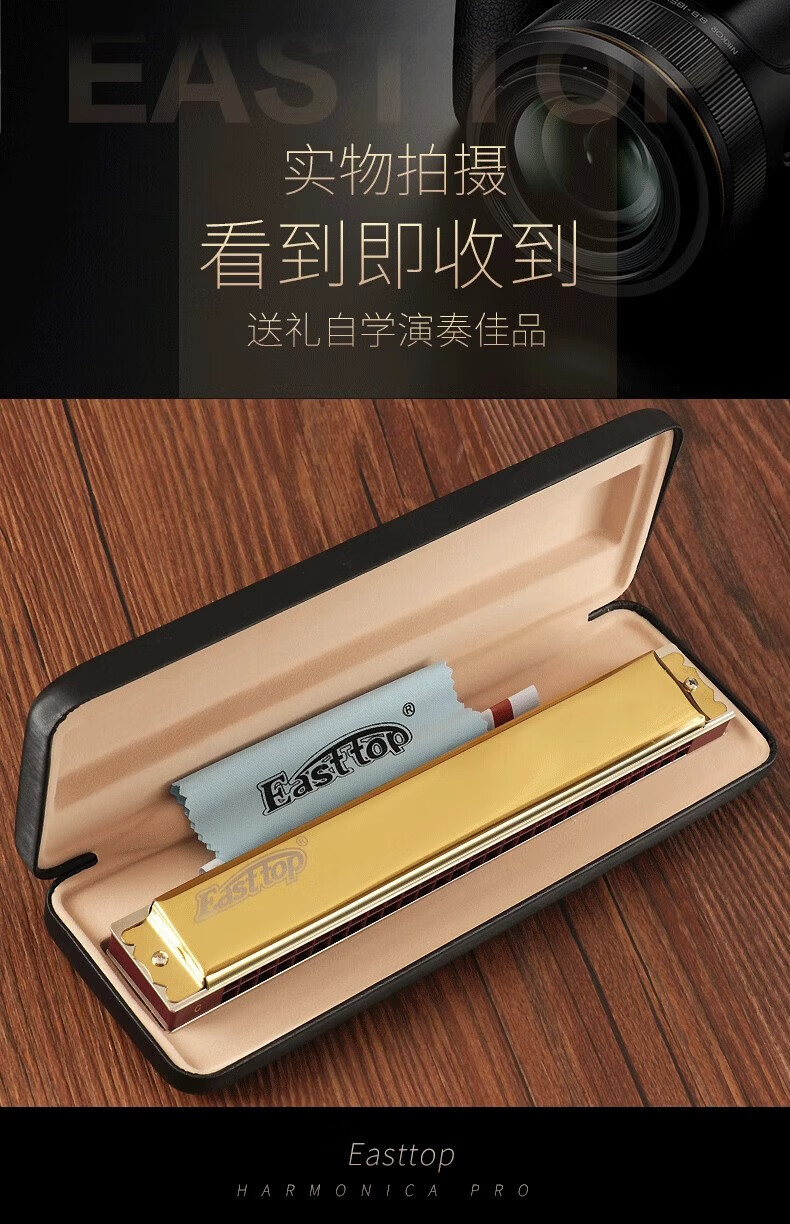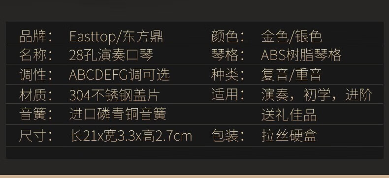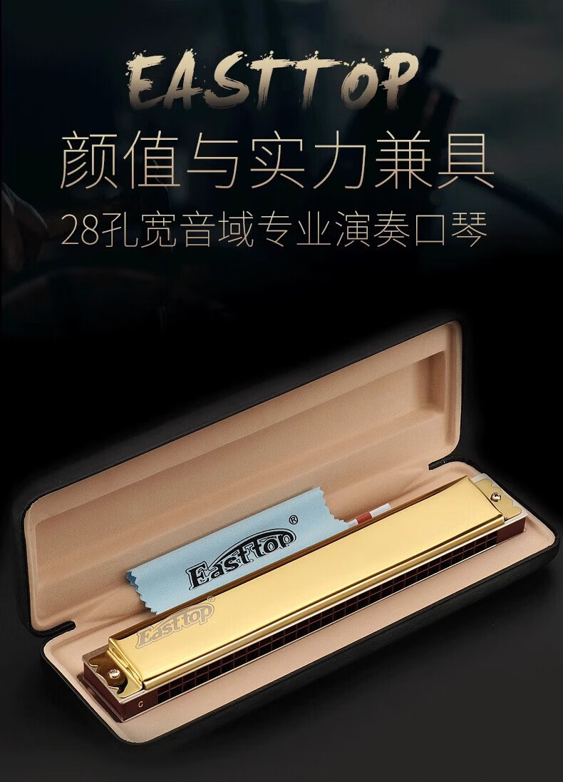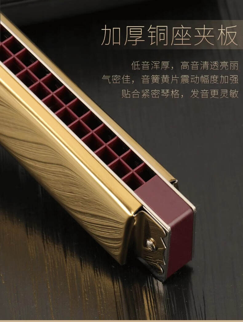 Dongfangding German imported gongs 28-hole polyphonic harmonica twelve-key accent C-key high-end adult professional performance instrument 28-hole A key golden polyphony